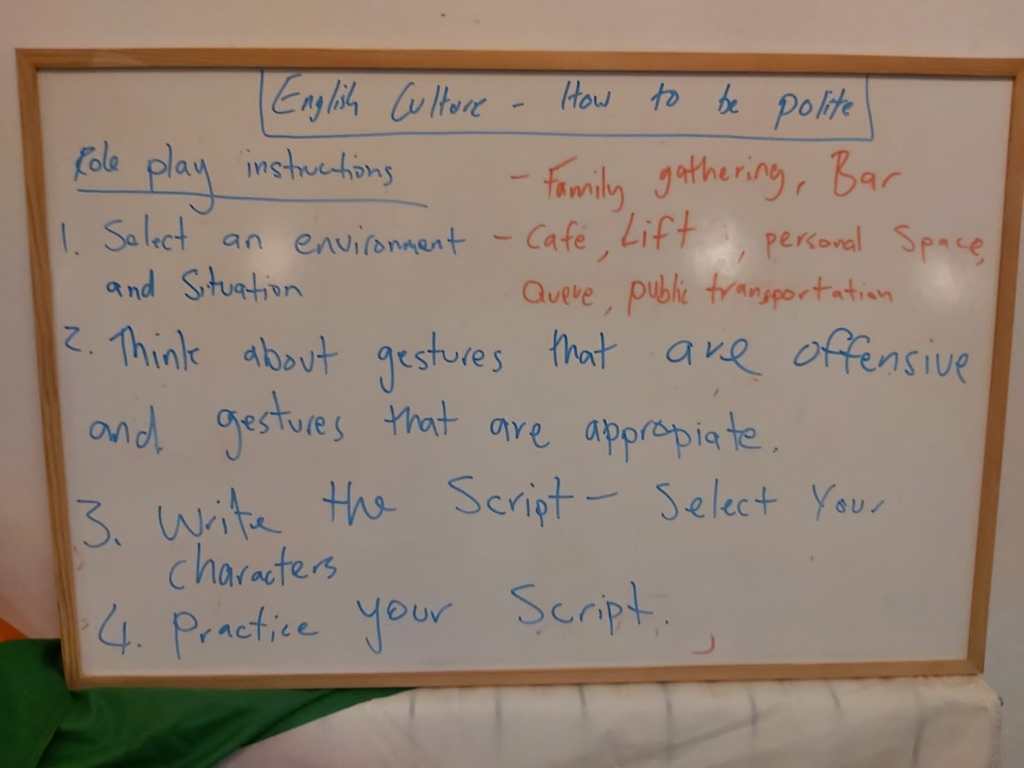 A las cuatro calentamos con unos juegos que nos ayudan a deshinibirnos, y nos preparamos para empezar con el Role Play. Time to speak in engish all the time!