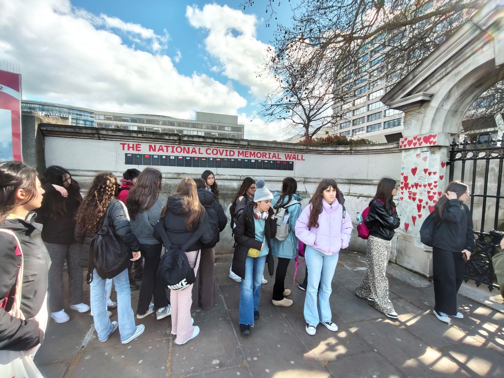 Después de nuestra visita al muro en Memoria de las personas fallecidas por COVID, nos echamos una foto delante del Big Ben y las Casas del Parlamento.