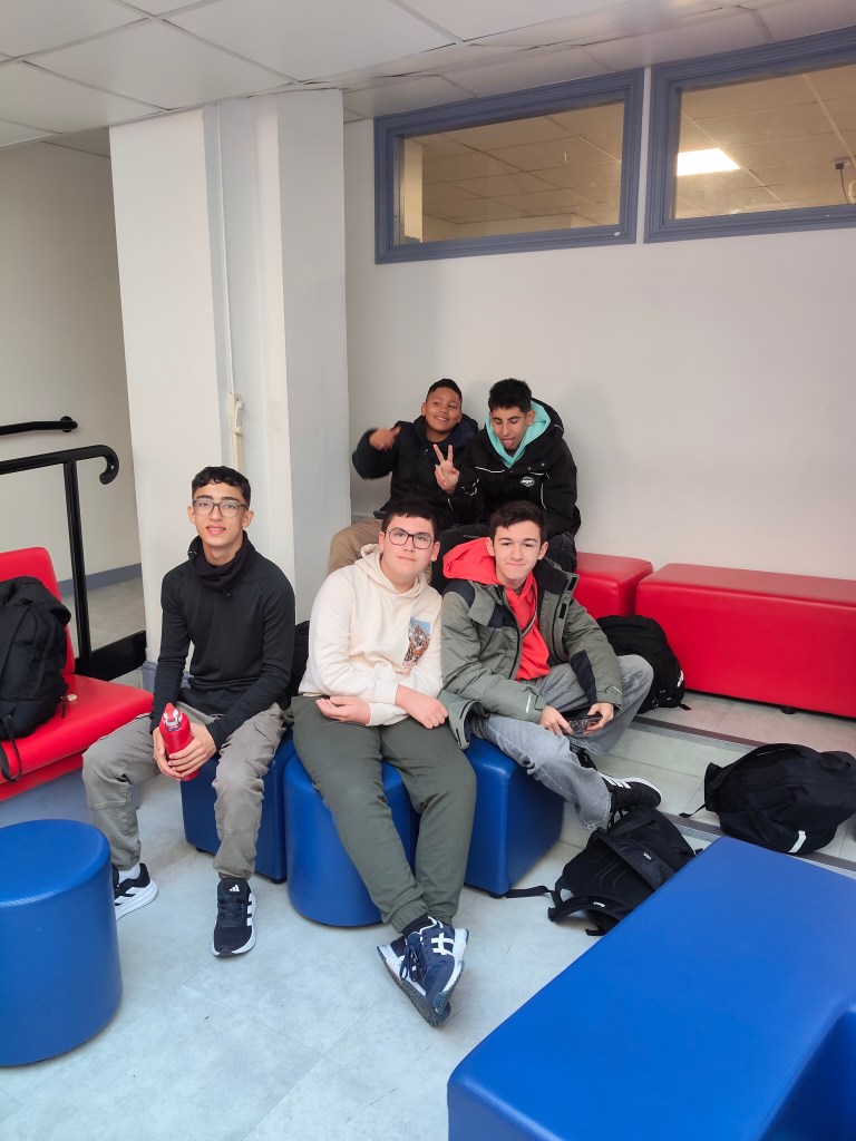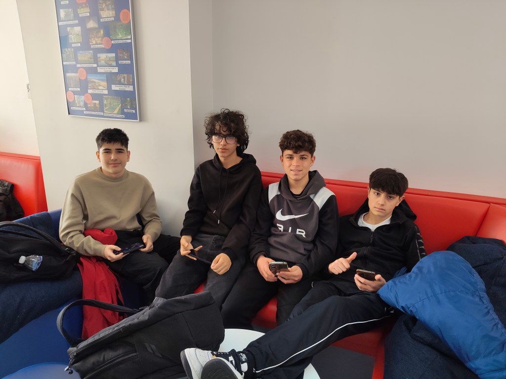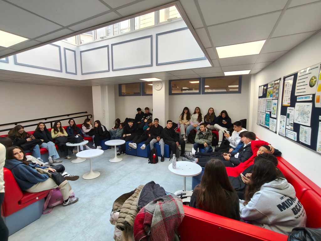 Esta mañana nos levantamos temprano de nuevo para estar a las 8.30-9 a.m en la academia. Nuestras familias nos han acercado en coche para que no llegaramos tarde.Al llegar al colegio, hemos tenido 1 hora para descansar.