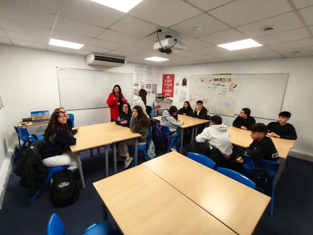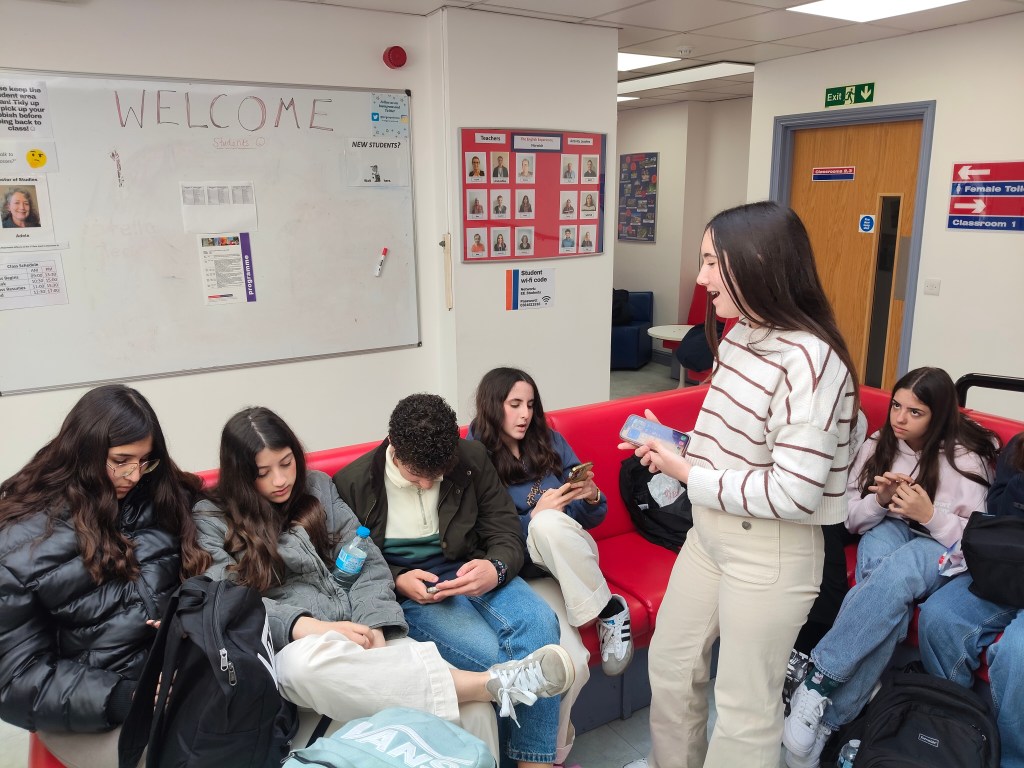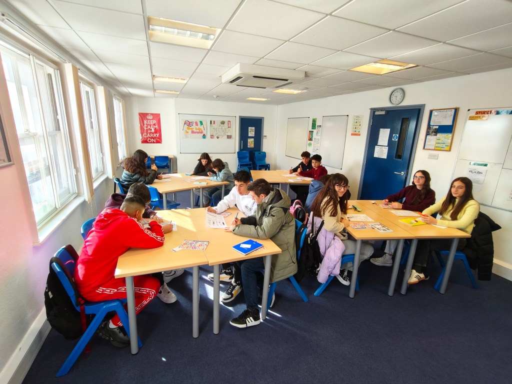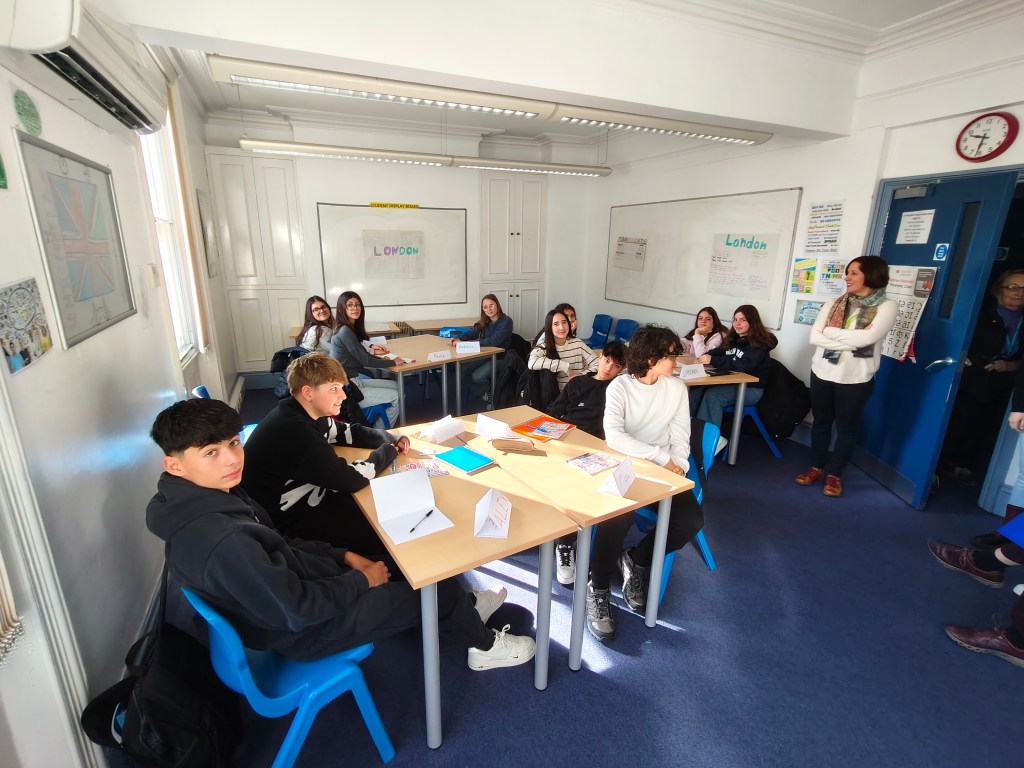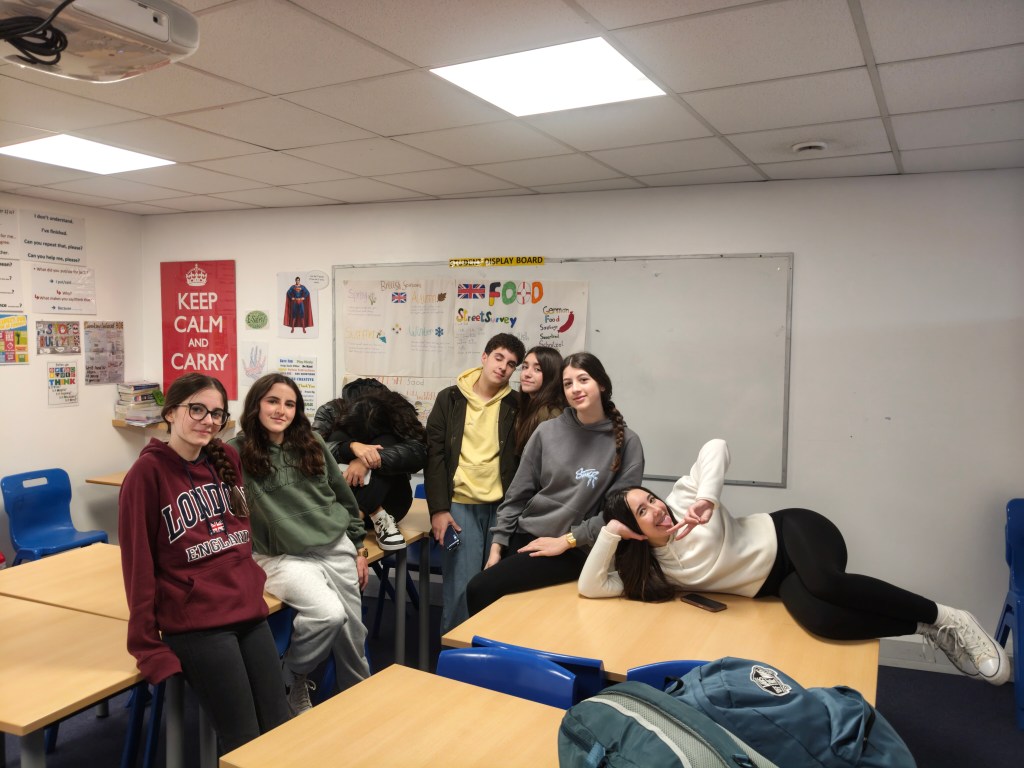Esta mañana los alumnos tuvieron clase de inglés de 9 a 12.30 sobre aspectos culturales como Comida y Deportes en Inglaterra e hicieron un actividad oral sobre descripción de fotos y al finalizar tuvieron una hora y media de descanso.