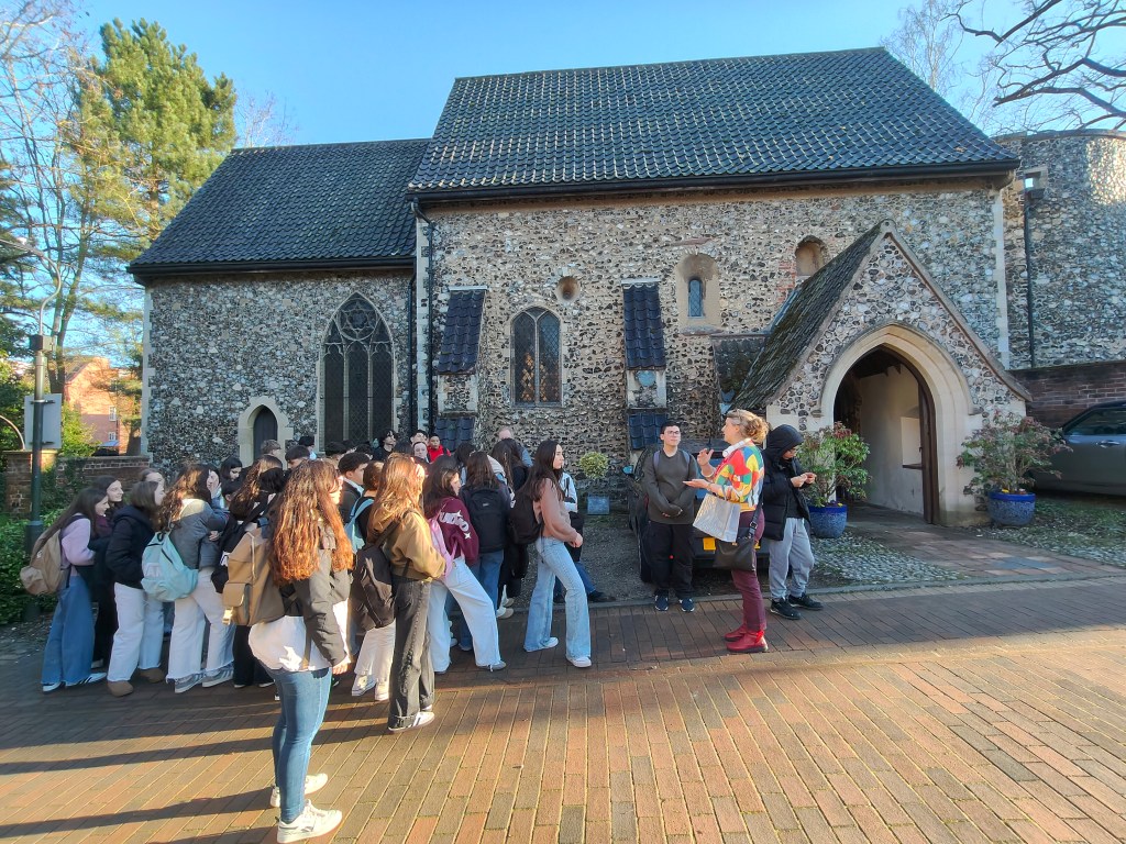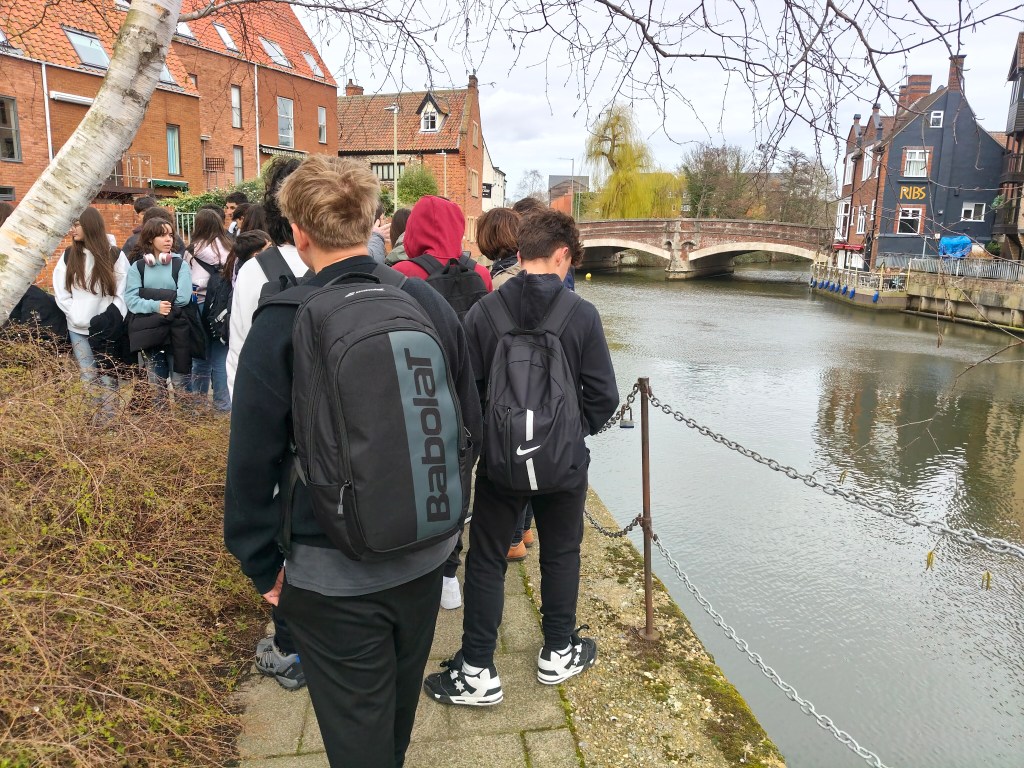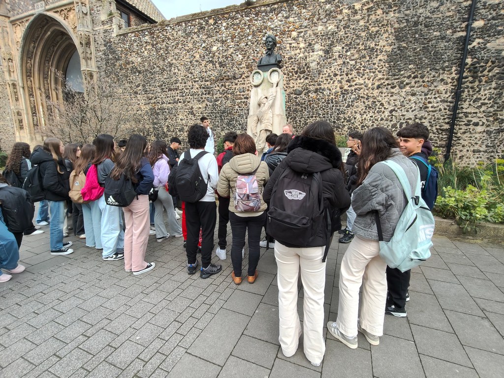 Después de comer, a las 2, quedamos con nuestro guía, Mark, para hacer un tour de Orientación por la ciudad para que los alumnos conozcan y sepan cómo llegar a los lugares más representativos de la ciudad como el mercadillo, las orillas del río Wemsum, el centro pintoresco y medieval de Norwich así como el centro comercial y el Fórum que será nuestro lugar de encuentro cada día después de clase para comenzar las visitas a la ciudad.