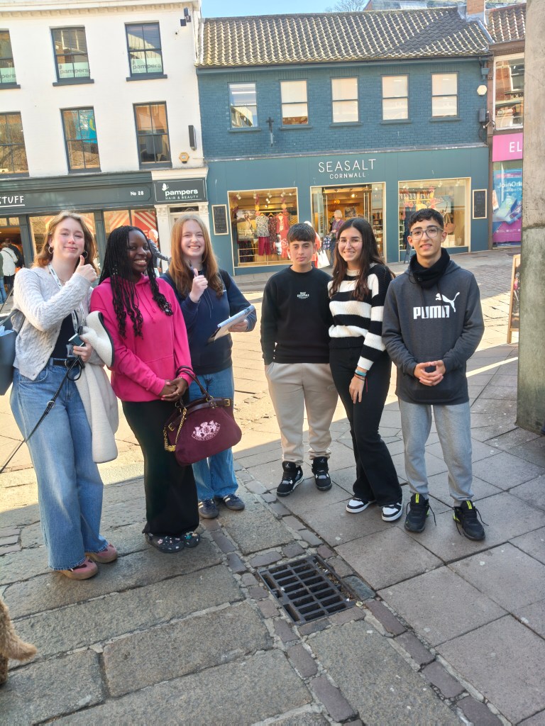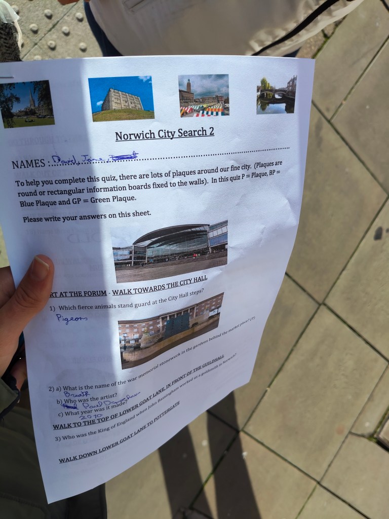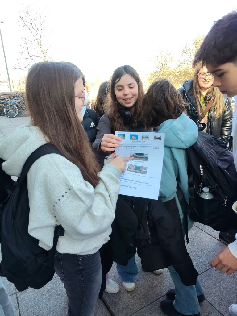Después del descanso, quedamos en el Forum para hacer una actividad de búsqueda de acerca los lugares más significativos de la ciudad así como contestar a preguntas sobre datos curiosos sobre la ciudad para comprobar que recuerdan lo que nuestro guía, Mark, les dijo ayer sobre la ciudad y sobre las calles principales de Norwich.