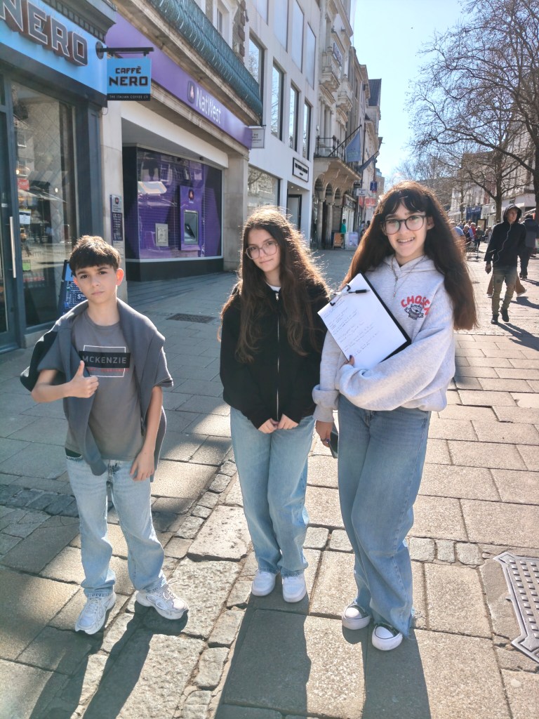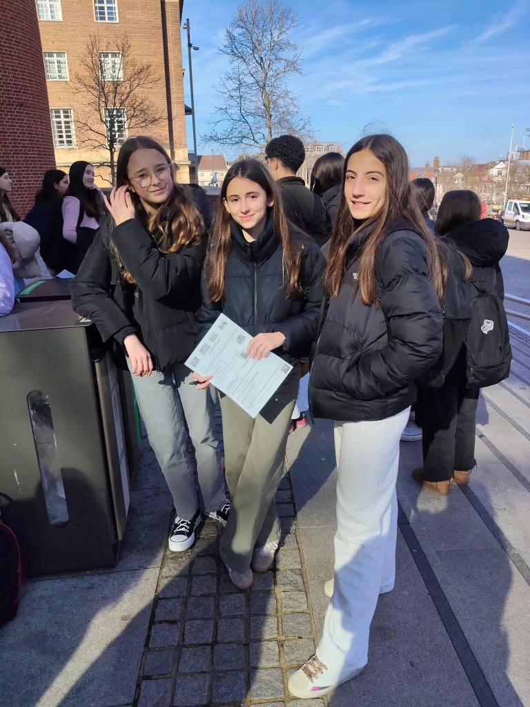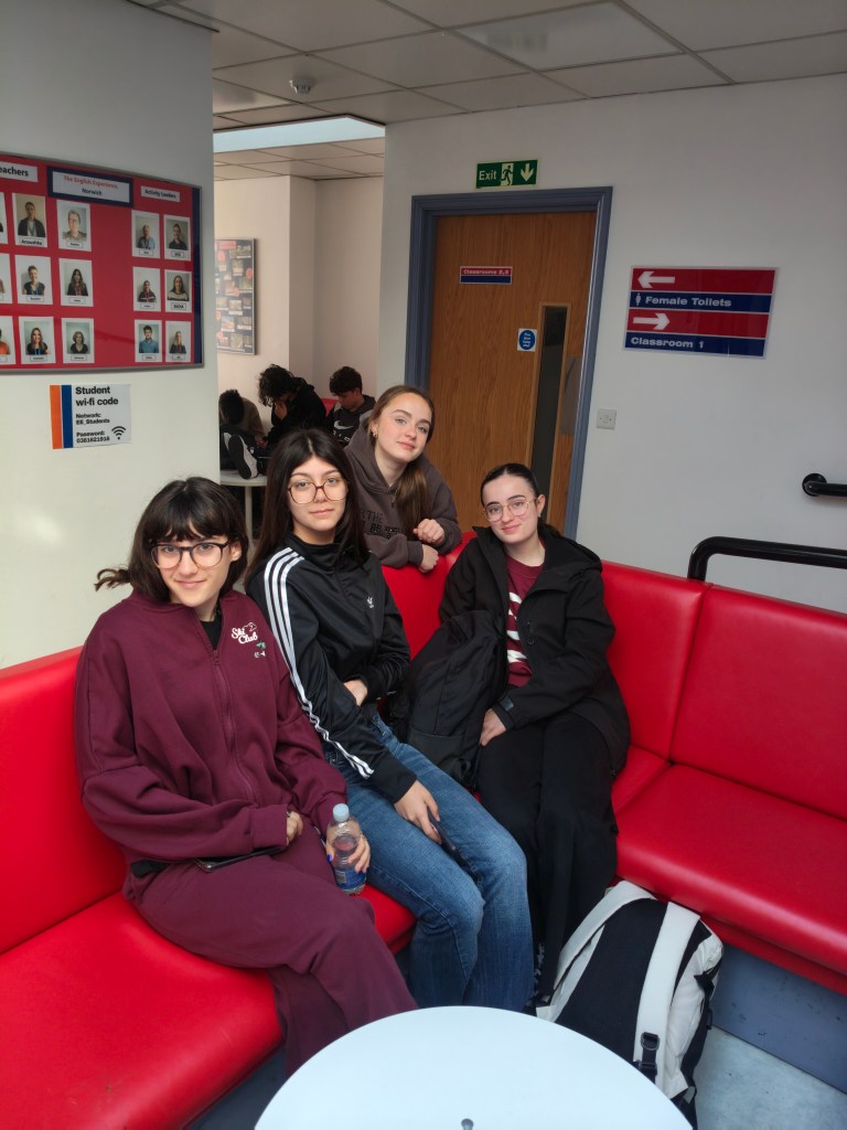 Hola a todos! El día comenzó a las 9 de la mañana como siempre con clases hasta las 12.15. A las 11 algunos de ellos salieron por el pueblo a hacer un pequeño cuestionario a la gente de Norwich sobre comida, deportes y cultura inglesa.