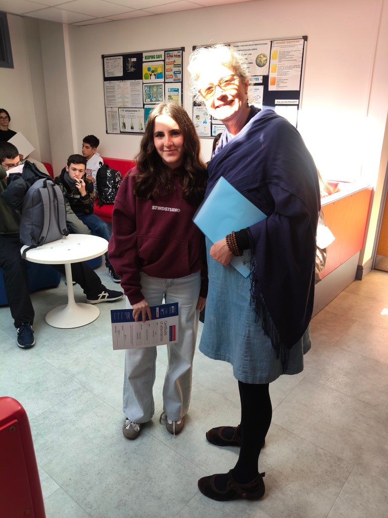 Cuando regresaron, los alumnos recibieron sus certificados de asistencia al curso de Inglés.