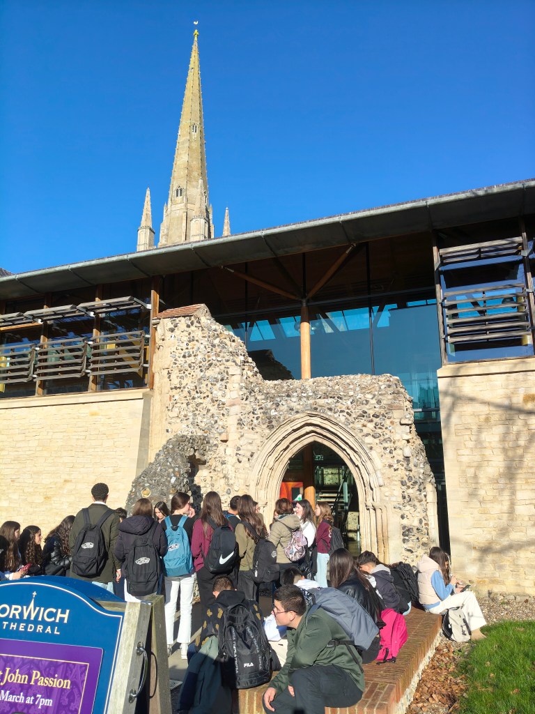 Después de la entrega de premios tuvieron una hora y media de tiempo libre para comer y dar una vuelta y a las 2, quedamos en el Forum para ir a visitar la Catedral de Norwich.