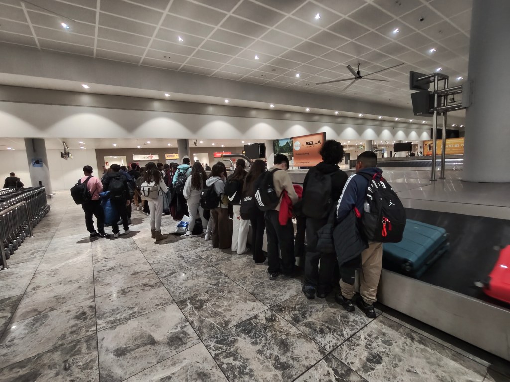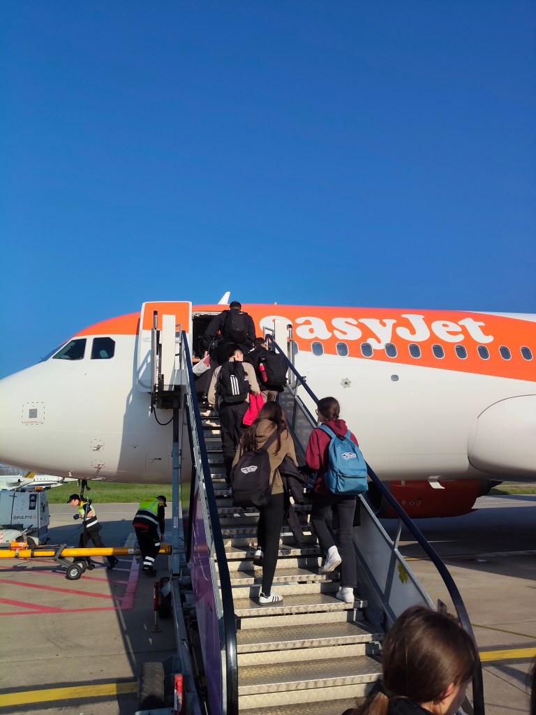 Al aterrizar al aeropuerto de Alicante hemos ido a recoger las maletas y hemos tenido que esperar hasta las 20h30 porque algunos alumnos han tenido un problema con las maletas y han tenido que ir a reclamar al mostrador de Easy Jet.