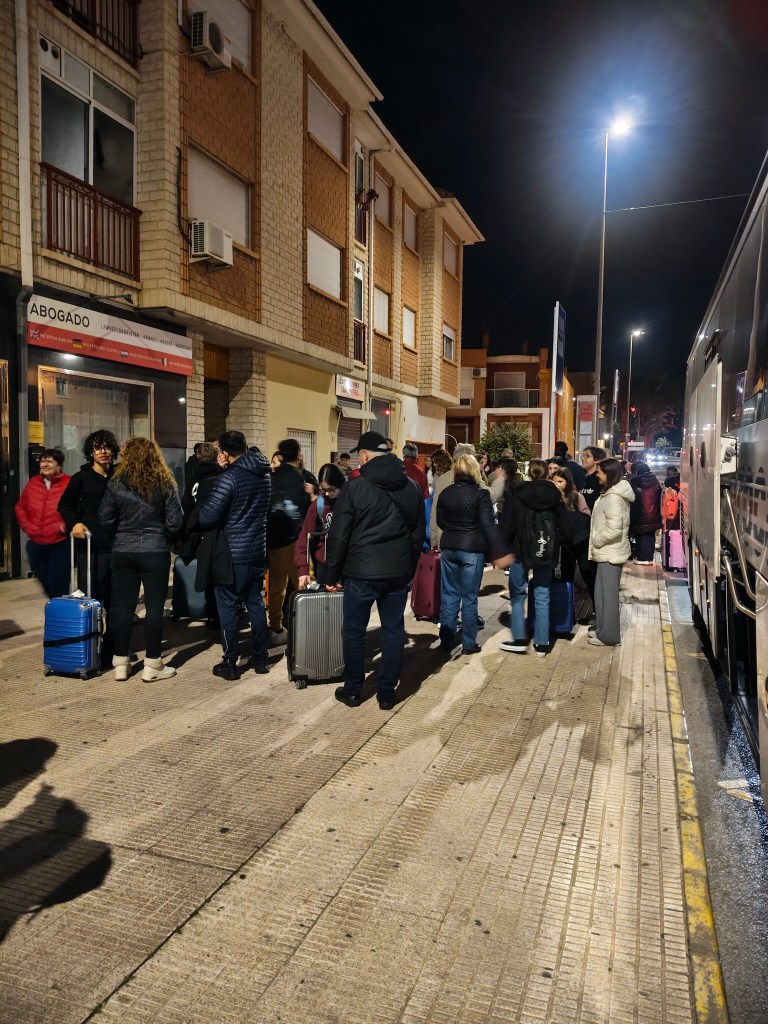 Finalmente, hemos salido del aeropuerto de Alicante casi una hora después y el conductor del autobús nos ha recogido para ir al Instituto en Santomera. Hemos llegado sobre las 21.30 a Santomera.