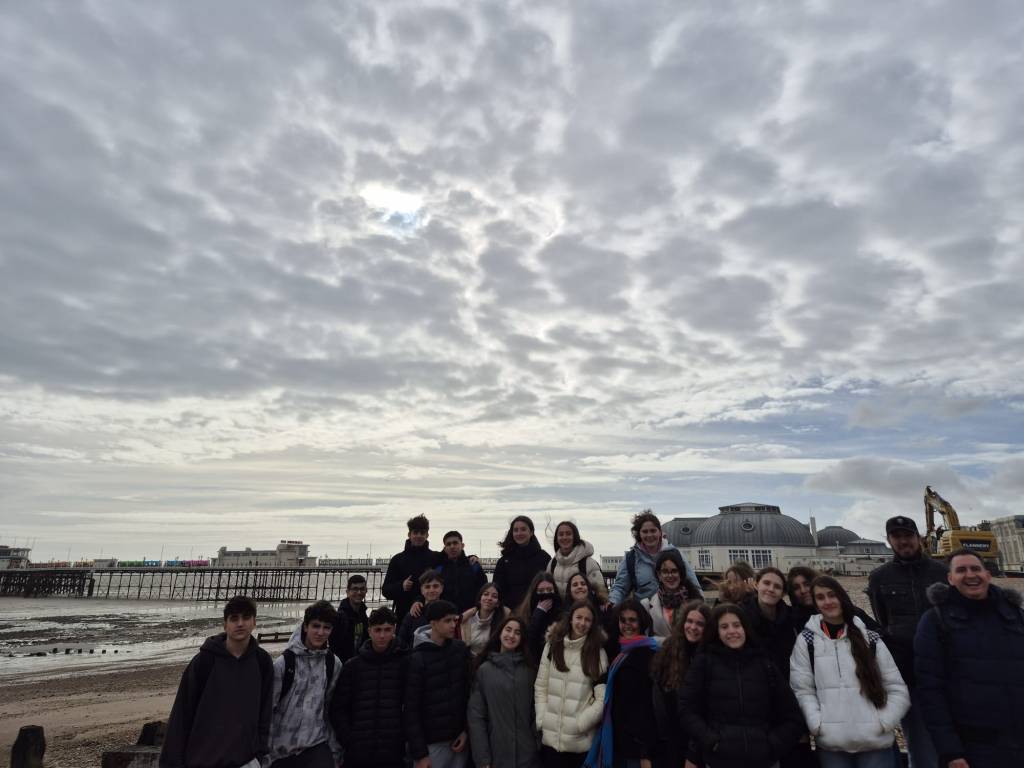 Con los profes Alberto y Marco, y Helena, la monitora (que son súper majos), hemos bajado a la playa y paseado por el mítico muelle. El mar y el cielo estaban tan bonitos que parecía una postal. Estamos felices y contentos con la escuela, con el pueblo y con las familias de acogida. Os dejamos unas fotitos para que veáis nuestro día.