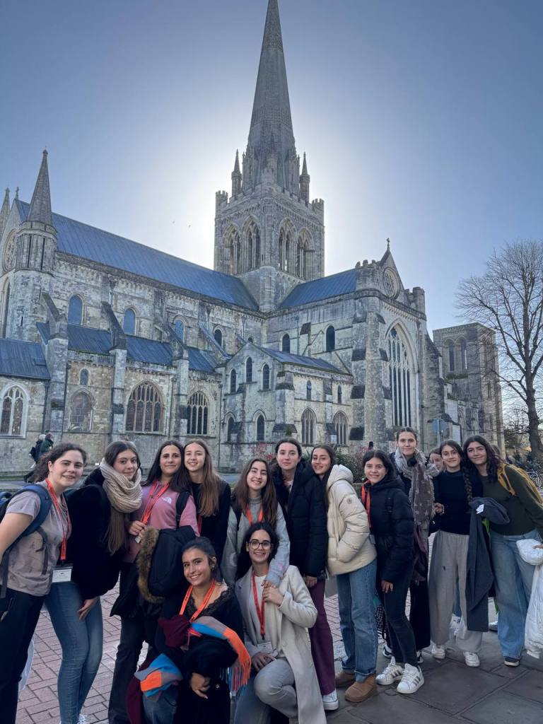 Hoy tocaba excursión al pueblo de al lado que se llama Chichester, hemos ido en tren en un viajecito de media hora. Nos han llevado de visita la iglesia que tiene más de mil años y es impresionante y una maravilla, rodeada de jardines y casas espectaculares. El pueblo es muy agradable y hemos tenido la buena suerte es que hoy ha sido un día muy soleado, no hacía viento ni frío así que hemos paseado tranquilamente.
