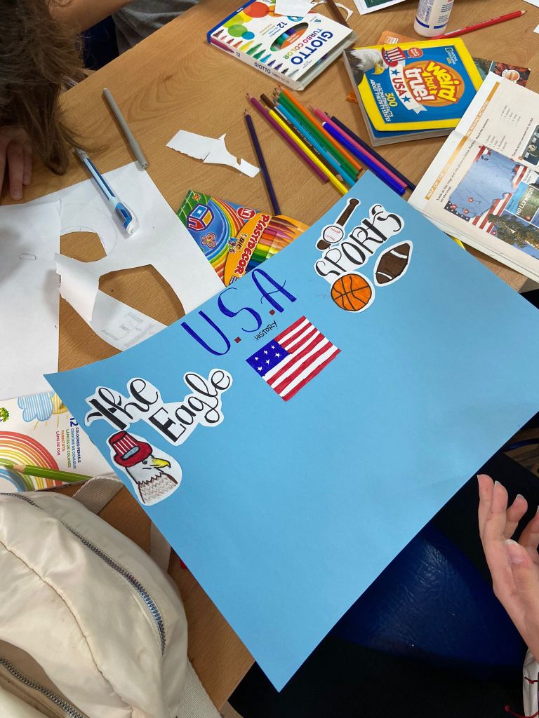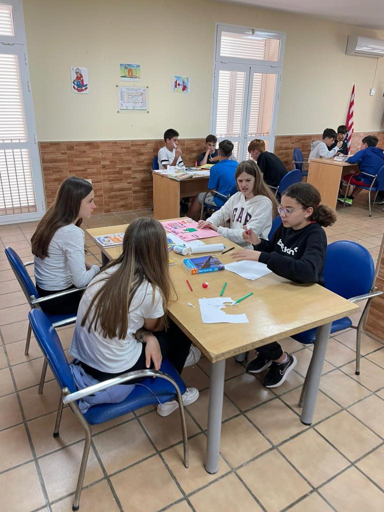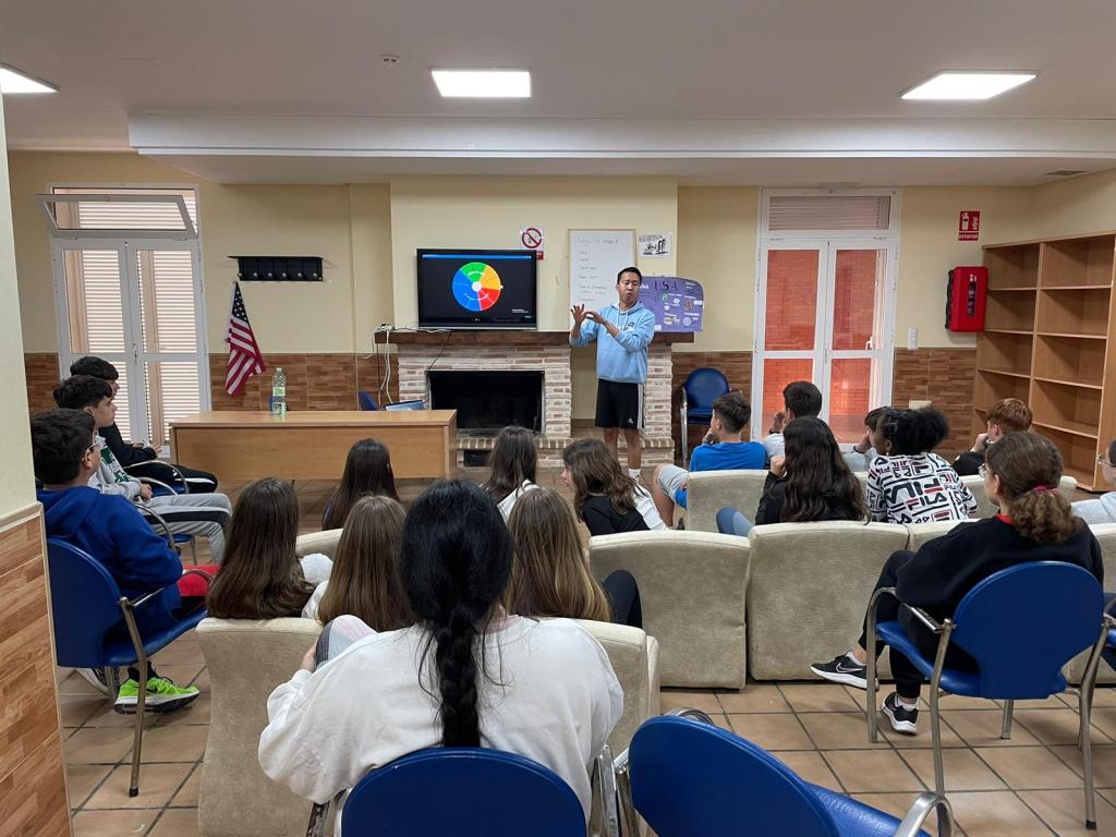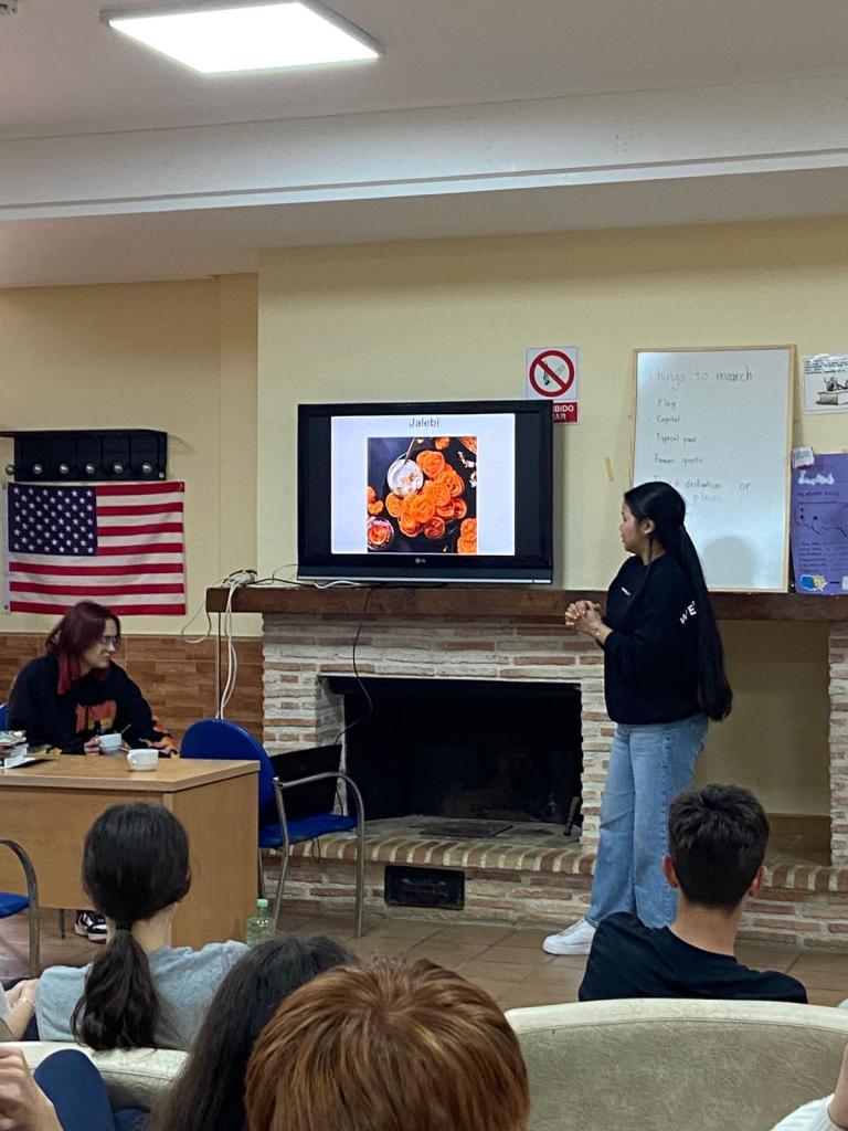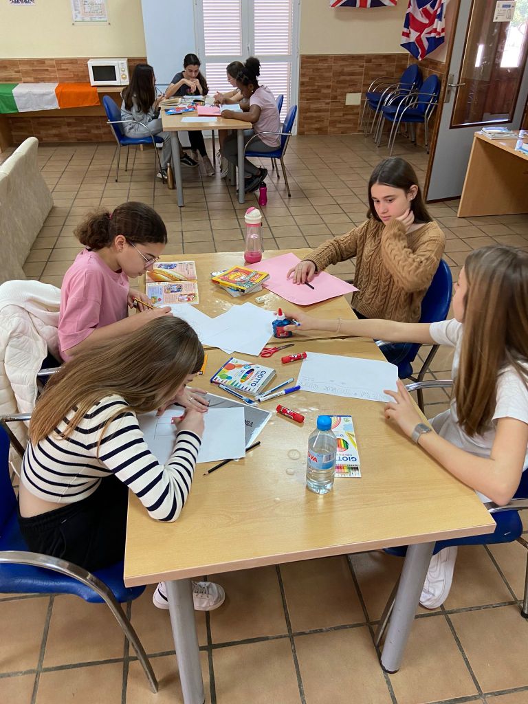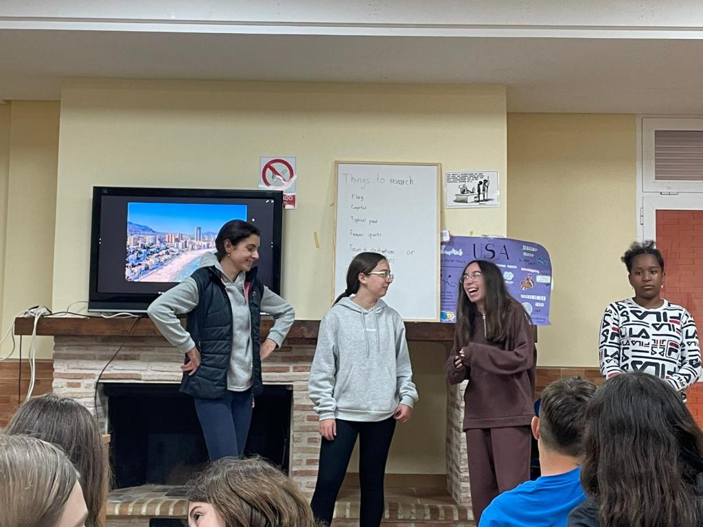 Hoy ha sido el primer día del grupo. Hemos empezado el día jugando a juegos de presentación con los monitores nativos y luego han empezado los proyectos que presentarán el miércoles. Por la tarde, han participado en una actividad de «role-play» o teatro después de escuchar la presentación de Bortak, una de las monitoras, y aprender con ella sobre India.
