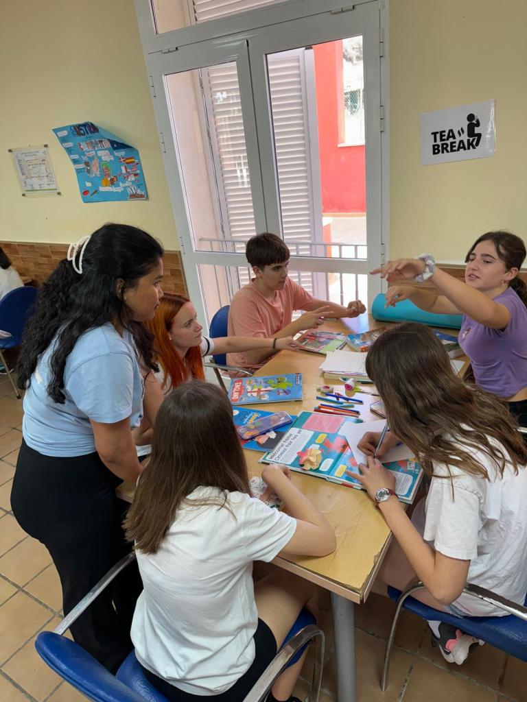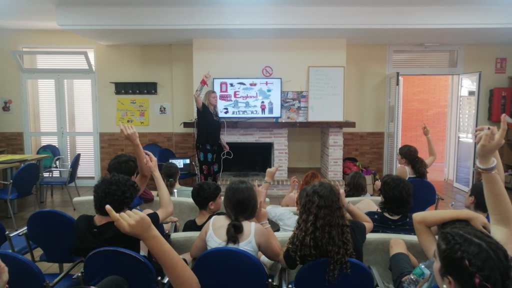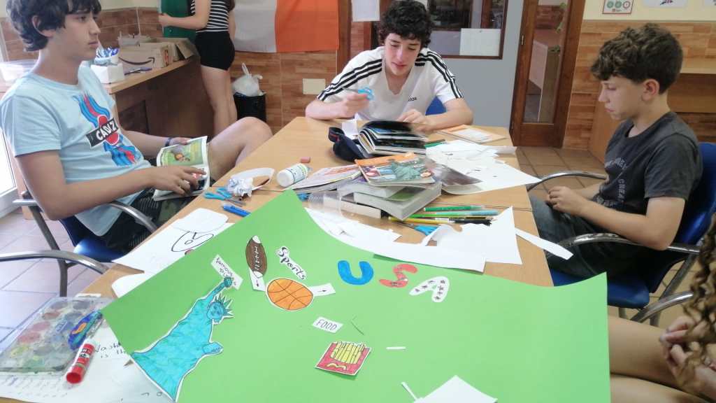 Por la tarde, continuaron con el trabajo de sus proyectos pero esta vez, han tenido como una entrevista con los monitores nativos como una actividad de speaking. Después, la monitora de Inglaterra hizo su presentación sobre su país. Los alumnos también jugaron a divertidos juegos con sus monitores. Finalmente, todos fueron a la playa para disfrutar.