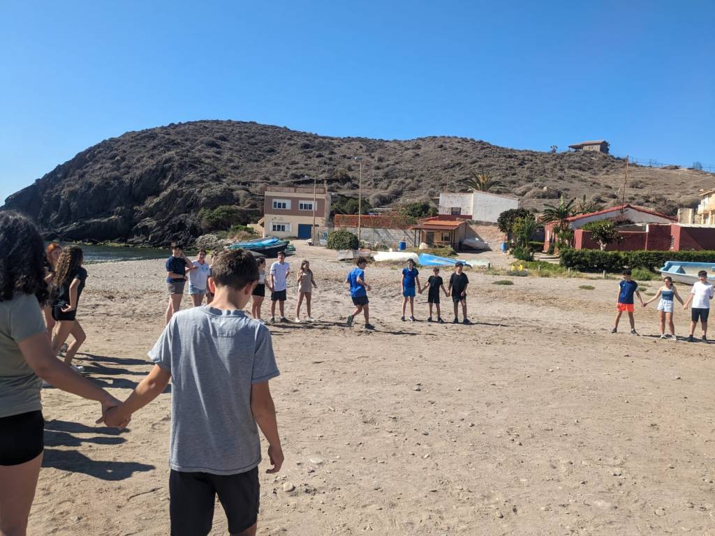 Hoy ha sido el segundo día del campamento de inmersión. Para empezar el día, los alumnos junto con los monitores y el profesor han ido a la excursión, en el parque natural de Calnegre para bañarse.