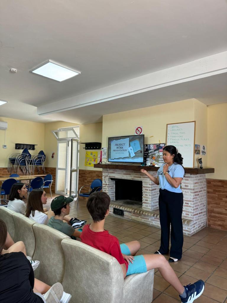 Posteriormente, uno de los monitores nativos mostró su presentación sobre las pelis. Para finalizar el día, los alumnos realizaron una actuación sobre la misma tema y vieron una película en inglés antes de dormir.