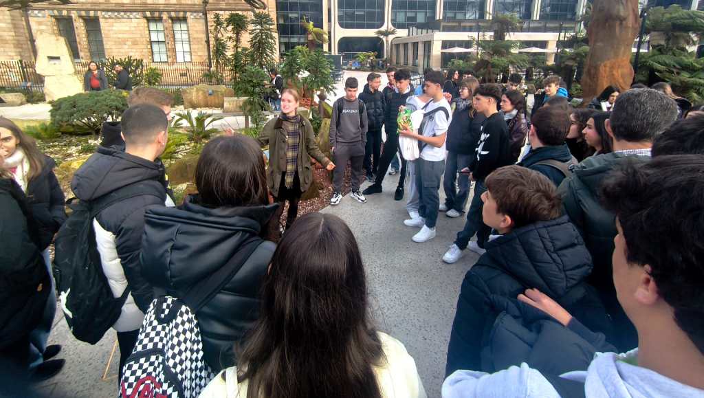 Durante la visita guiada hemos podido descubrir y aprender sobre los dinosaurios y los fósiles, observando esqueletos de especies tan conocidas como el Tyrannosaurus rex, el Triceratops* y el recientemente identificado Enigmacursor. También recorrimos la Galería de Fósiles de Gran Bretaña, donde se exponen restos antiguos que nos permiten comprender cómo era la vida en la Tierra hace millones de años.