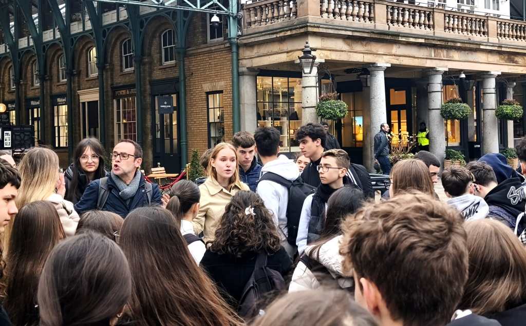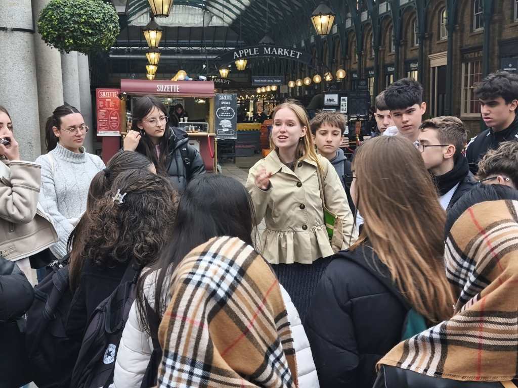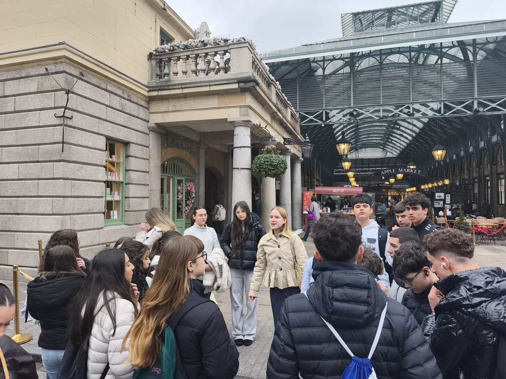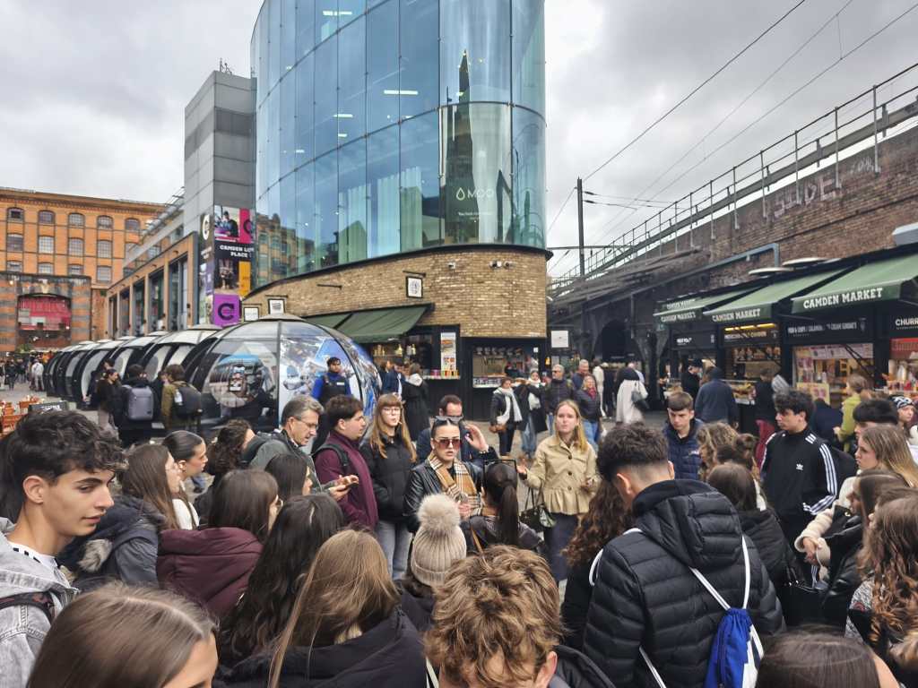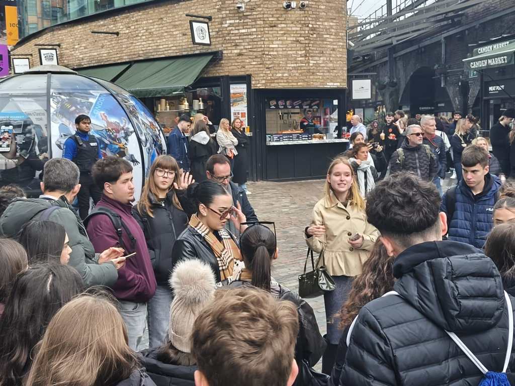 Nuestro día comenzó en Covent Garden, un antiguo mercado de frutas y verduras del siglo XVII, que ahora es un famoso barrio de Londres. Disfrutamos de elegantes tiendas, mercados artesanales y restaurantes. Luego, visitamos Camden Town, conocido por su escena alternativa y rock británico, frecuentado por artistas como Amy Winehouse. Recorrimos la zona buscando ropa vintage y comida internacional. Los alumnos practicaron su inglés comprando souvenirs, y por la tarde asistimos a clases para seguir mejorando.