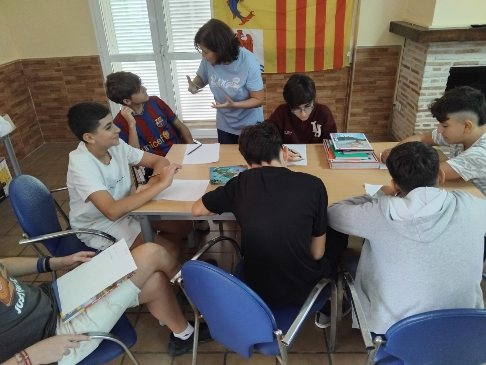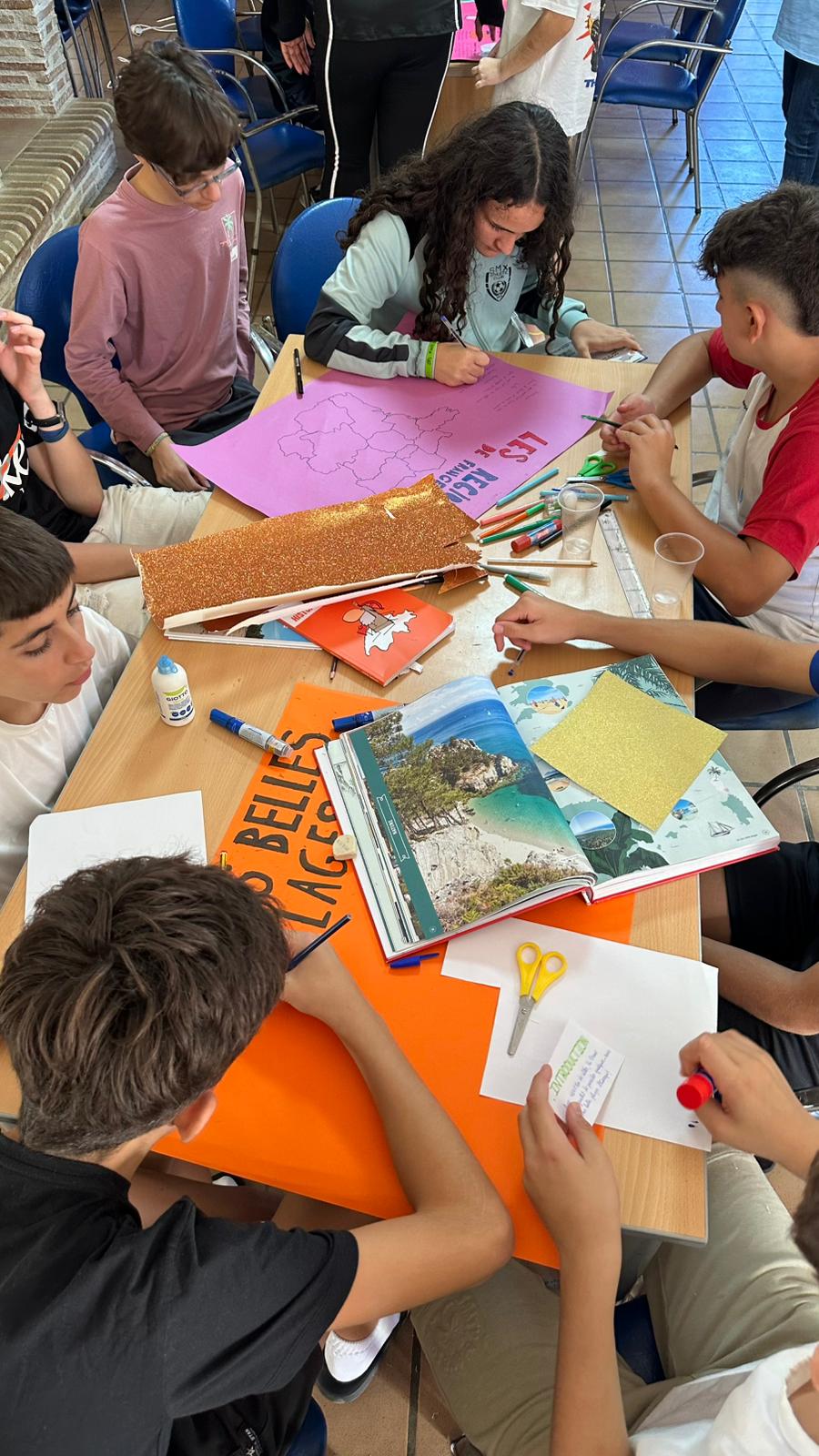 El ambiente era genial: todos concentrados, ayudándose entre ellos, buscando palabras en francés y riendo mientras trabajaban. ¡Un verdadero espíritu de equipo! 💪