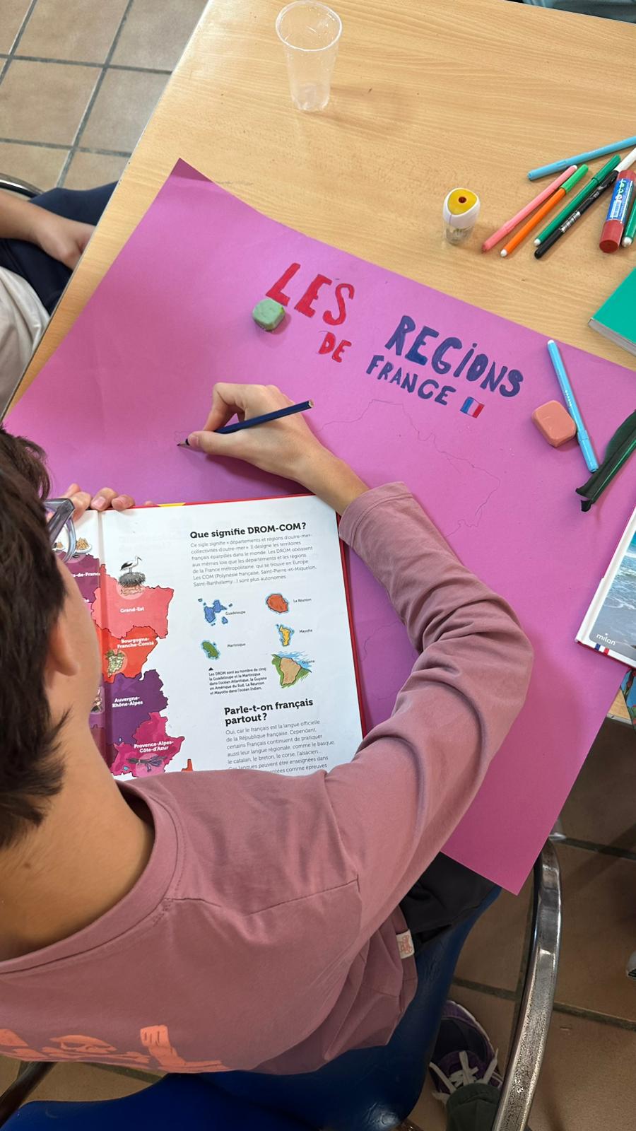 Se empezó el día con mucha energía y entusiasmo ☀️. Los niños se pusieron manos a la obra con sus proyectos, trabajando en equipo y mostrando una gran creatividad. Eligieron temas sobre la cultura, la historia, la geografía y la gastronomía francesas, preparando carteles, dibujos y presentaciones para mostrar al día siguiente.