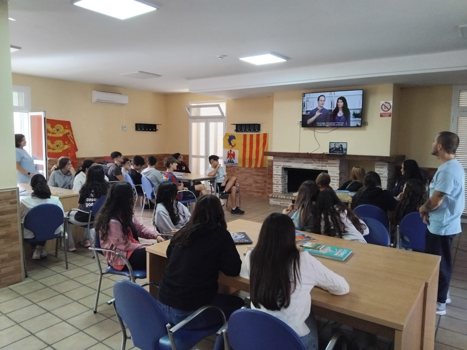 Comenzamos el día con una gran bienvenida 🎉. Los alumnos y sus profesores llegaron al albergue llenos de energía y curiosidad. Entre sonrisas, música francesa y un ambiente muy alegre, les presentamos el programa de los días de la inmersión.