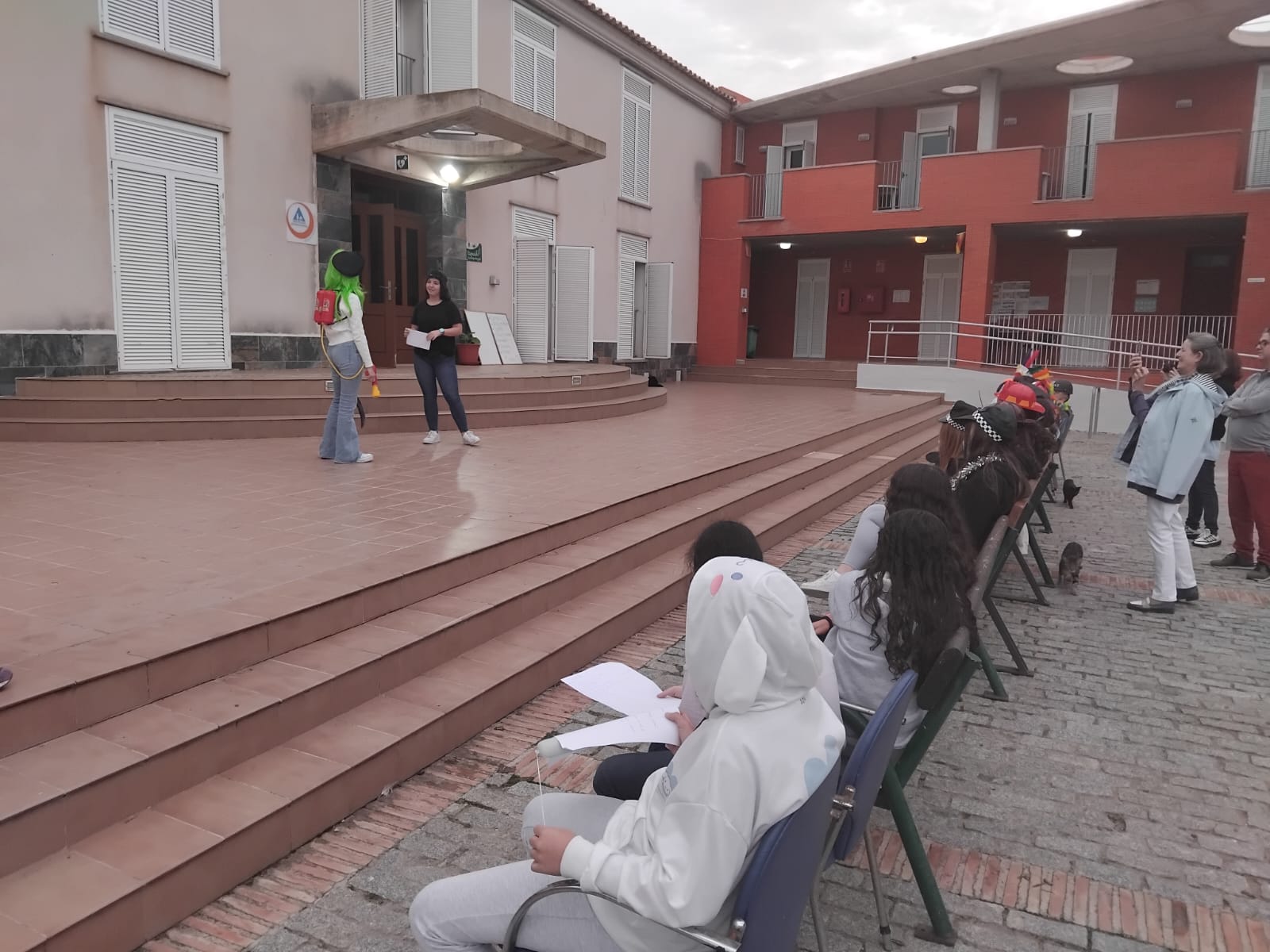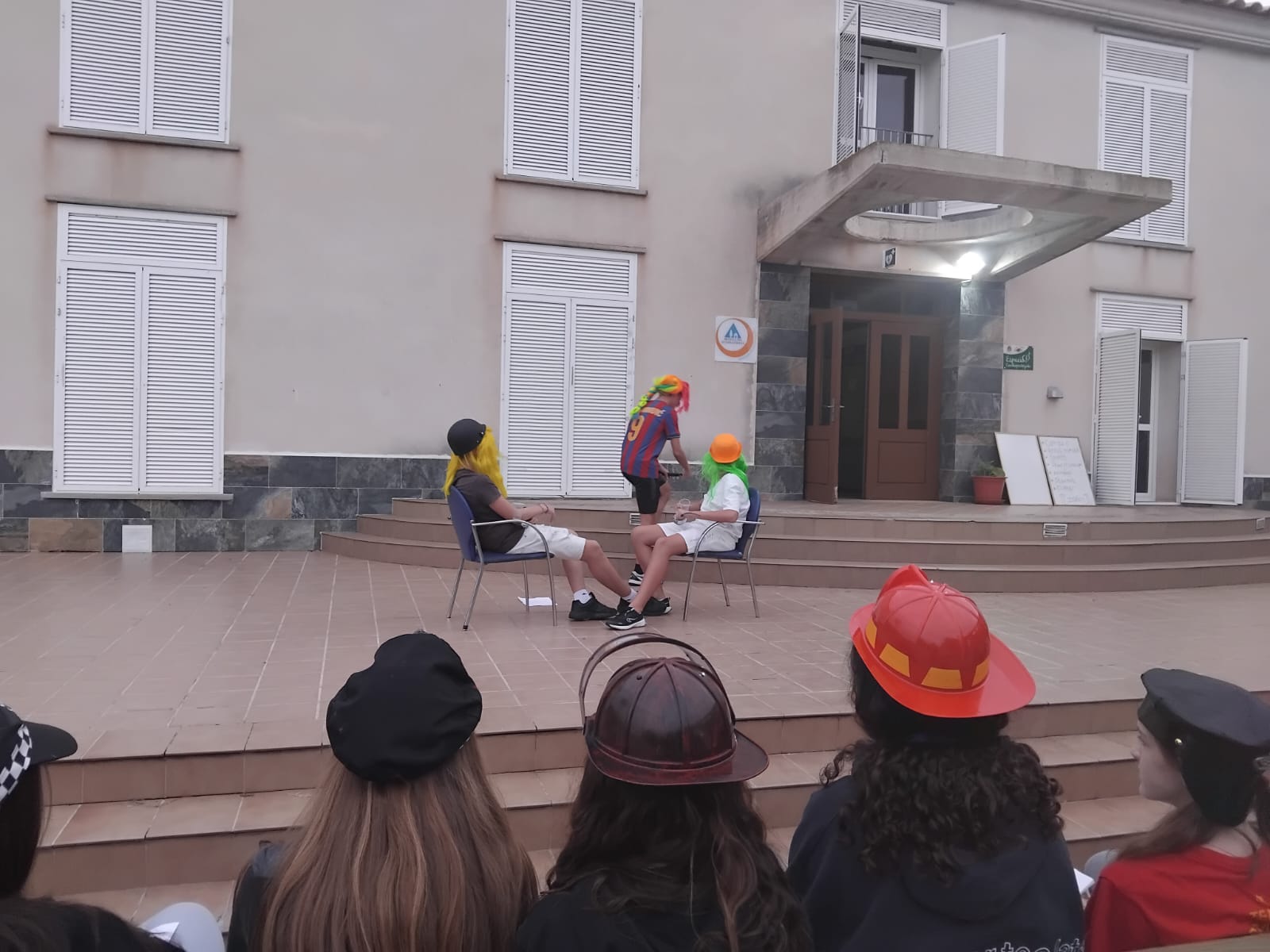 Luego llegó el momento del théâtre 🎬. Con disfraces, risas y mucha creatividad, los grupos prepararon sus escenas y las presentaron en el patio. ¡Un espectáculo genial lleno de buen humor y aplausos! 👏