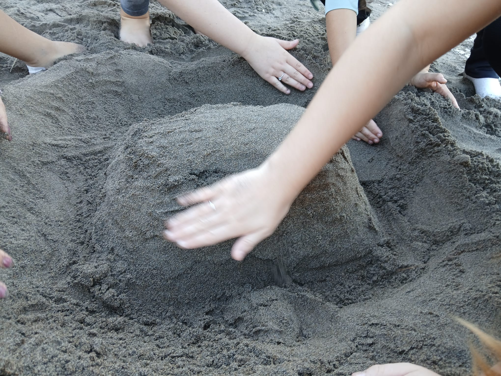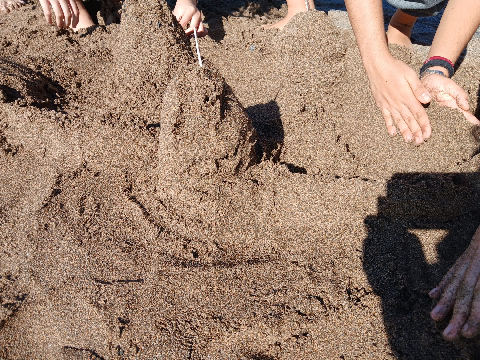Allí organizamos un concurso de construcciones con arena —un jeu de créativité avec du sable— donde los niños demostraron mucha imaginación, creatividad y trabajo en equipo.