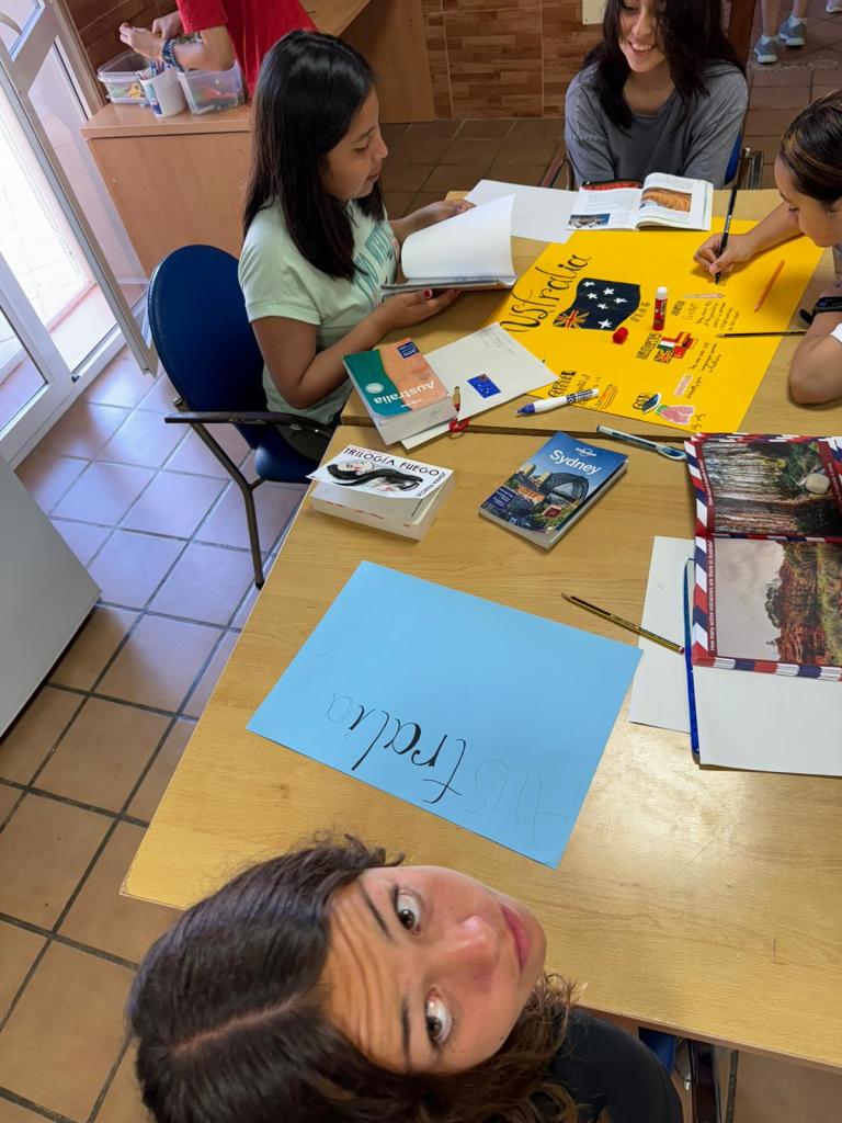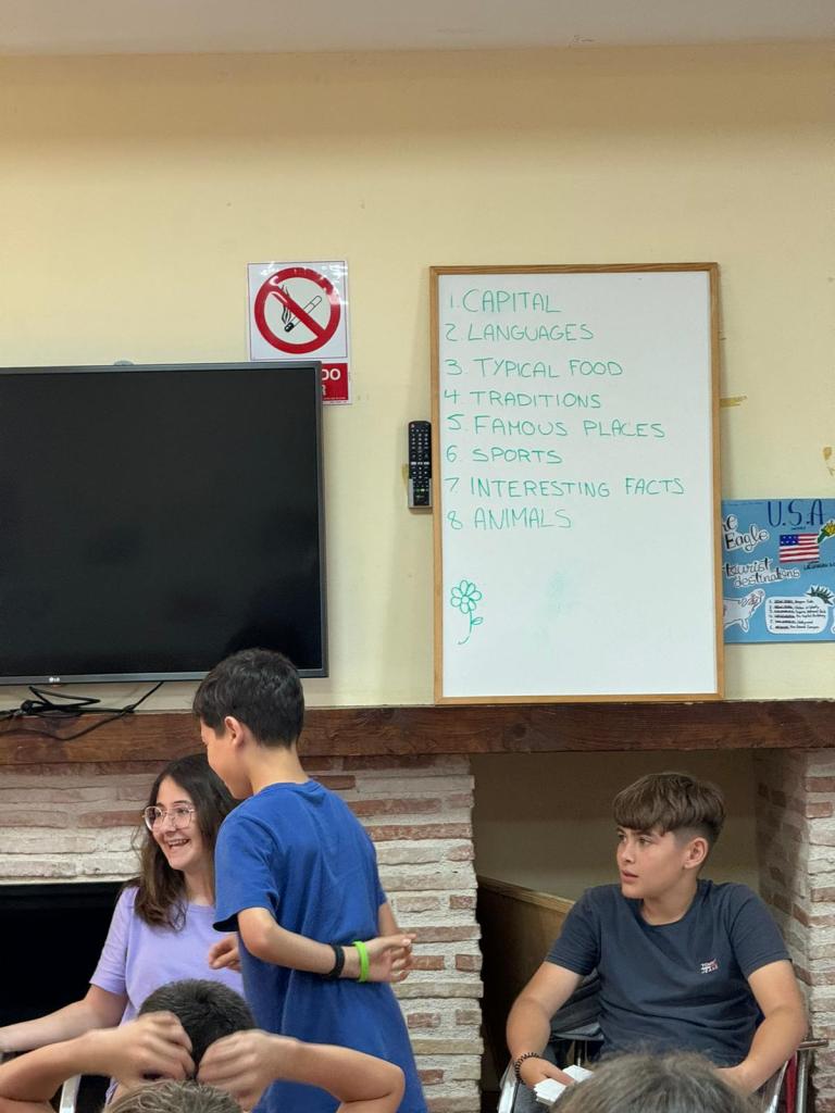 Por la tarde, continuaron con el trabajo de sus proyectos pero esta vez, han tenido como una entrevista con los monitores nativos como una actividad de speaking. Después, la monitora de Inglaterra hizo su presentación sobre su país. Los alumnos también jugaron a divertidos juegos con sus monitores. Finalmente, todos fueron a la playa para disfrutar.