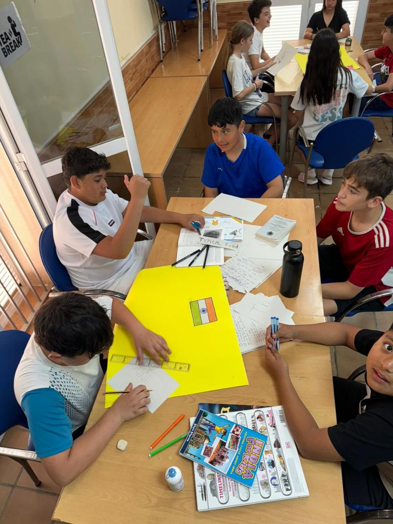 Hoy ha sido el segundo día del campamento de inmersión. Para empezar el día, los alumnos tenían que seguir trabajando en su proyecto de trabajo. Después, han jugado a un juego junto a la playa mientras la otra mitad del grupo veía la presentación sobre la India.