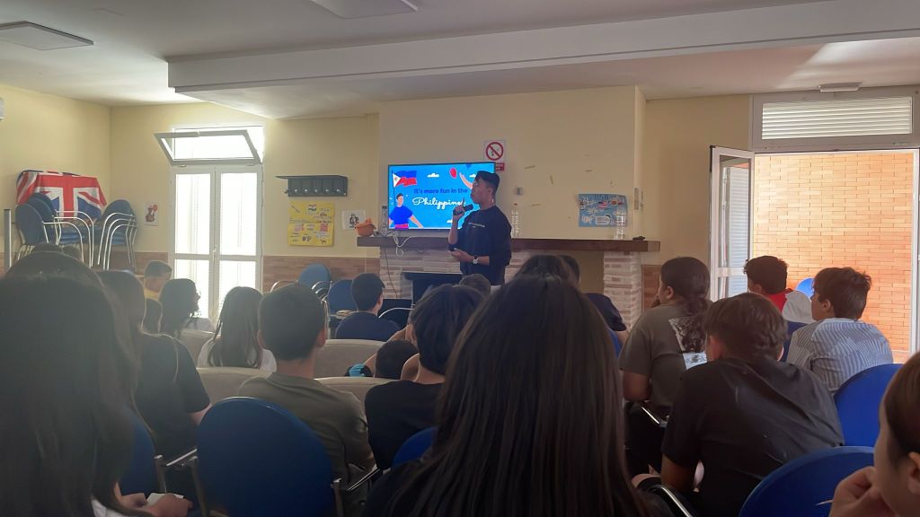Por la tarde, uno de los monitores nativos habló sobre su presentación de Filipinas y luego los alumnos hablaron sobre sus ciudades favoritas en España. Para terminar la noche, se celebró un concurso de talentos en el que alumnos y monitores cantaron y bailaron.
