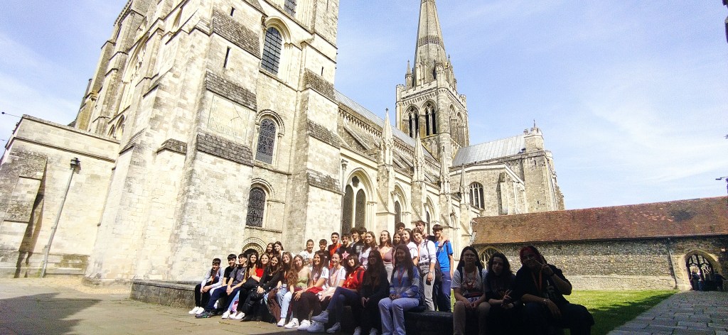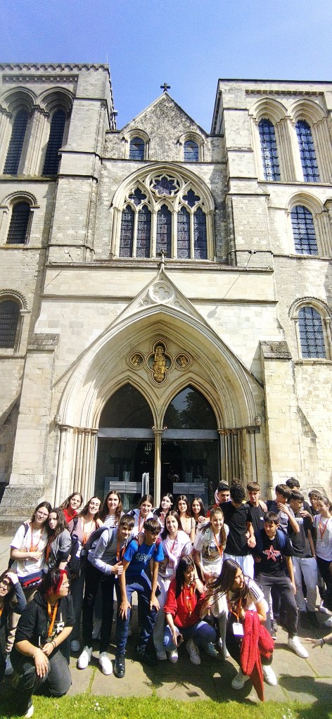 Día 10. Muy buenas tardes familias queridas. Por aquí disfrutando a tope, aprendiendo inglés y sudando la gota gorda. Ha sido otro día genial. Hemos tenido la última clase inglés y hemos recibido un certificado de la escuela. Nos hemos despedido de los teachers y de las amistades nuevas que hemos hecho. Hemos salido pitando para coger un tren a Chichester, un pueblo muy bonito y pintoresco a unos 40 minutos de Worthing. Antiguamente era un lugar de mucha importancia porque sus canales proveían a los pueblos de suministros, así que hemos paseado bordeando el canal y el parque que lo rodea. Hemos visitado (por fuera) la catedral que tiene más de 900 años y es impresionante. También hemos paseado por los Jardines de Obispo para relajarnos un poquito. Después de eso un rato largo de «free time» para explorar a nuestro aire. A la vuelta todo el mundo se ha recogido pronto porque mañana toca London!!!!!. Esperamos que os gusten las fotos. ¡Hasta mañana!