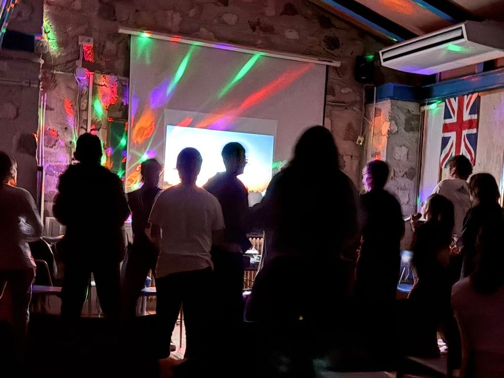 La noche es joven y, sin duda, es el momento perfecto para aprender y cantar canciones populares en inglés (además de practicar una canción en particular que cantaremos en nuestra última noche) para terminar el día.