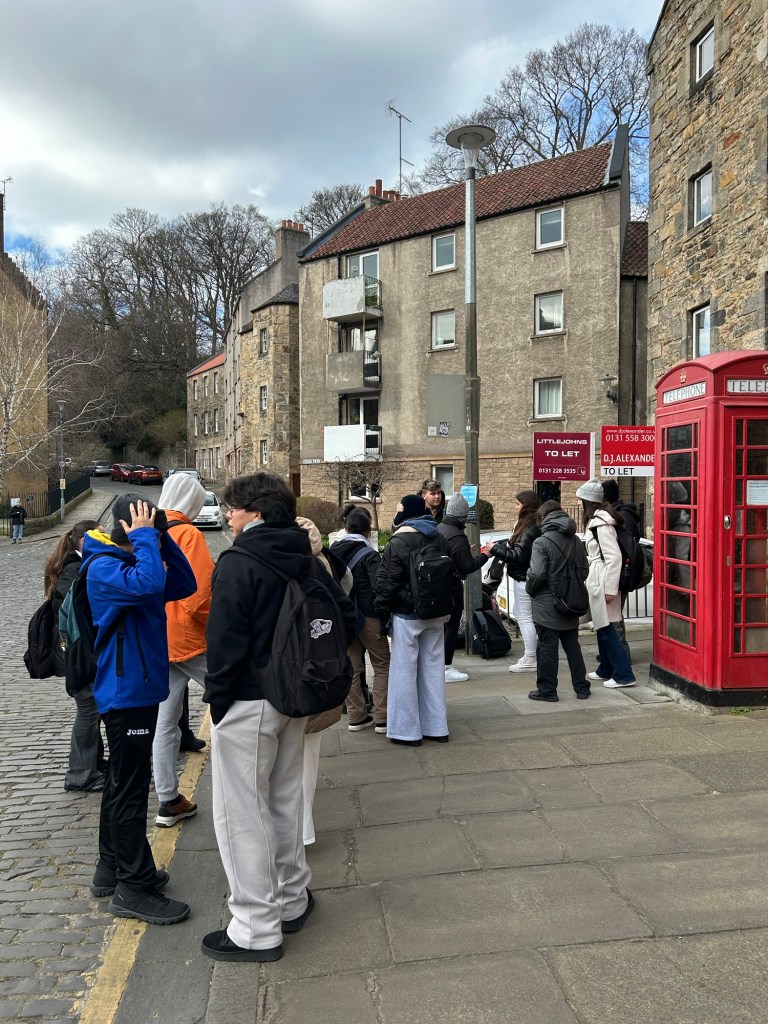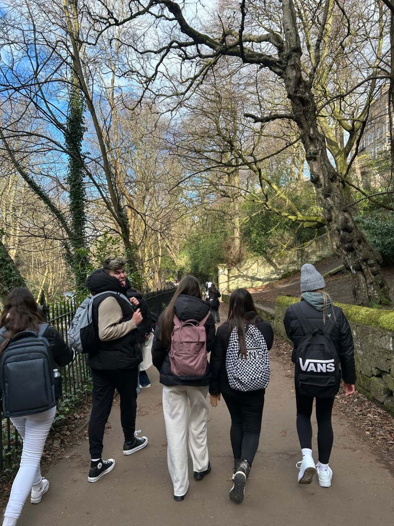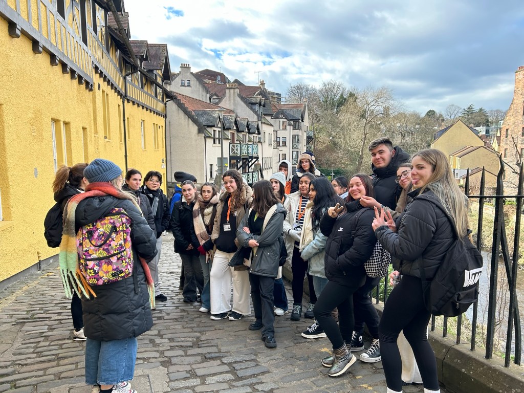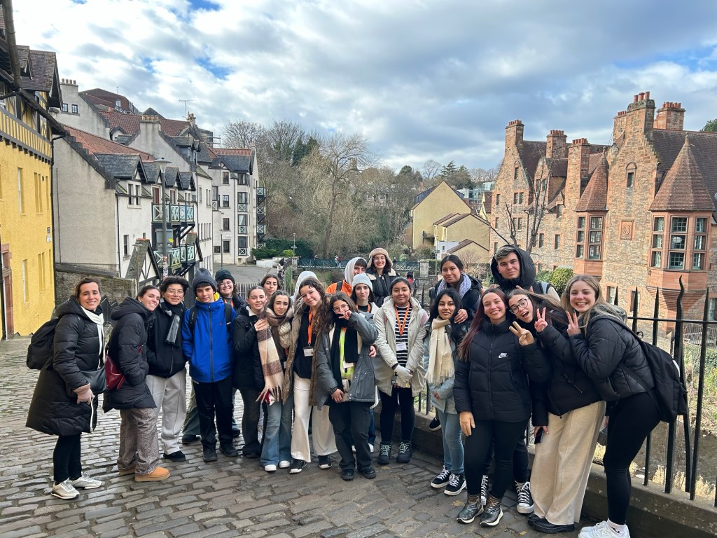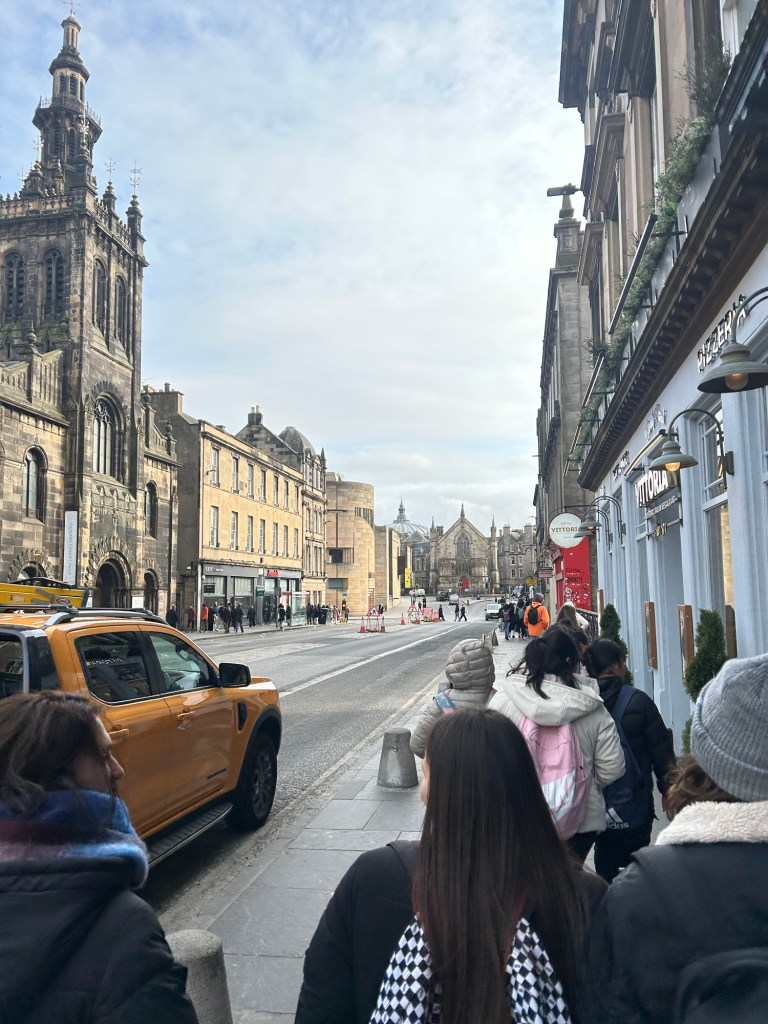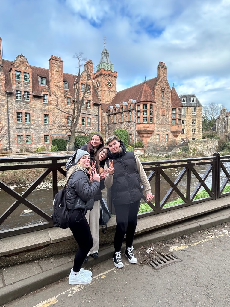 Después de unas cuantas horas de transporte (¡dos buses y un avión, que se dice rápido!), llegamos al centro de Edimburgo donde nos espera Victoria, quien llama a los taxis que llevarán a los alumnos a sus respectivas host families.