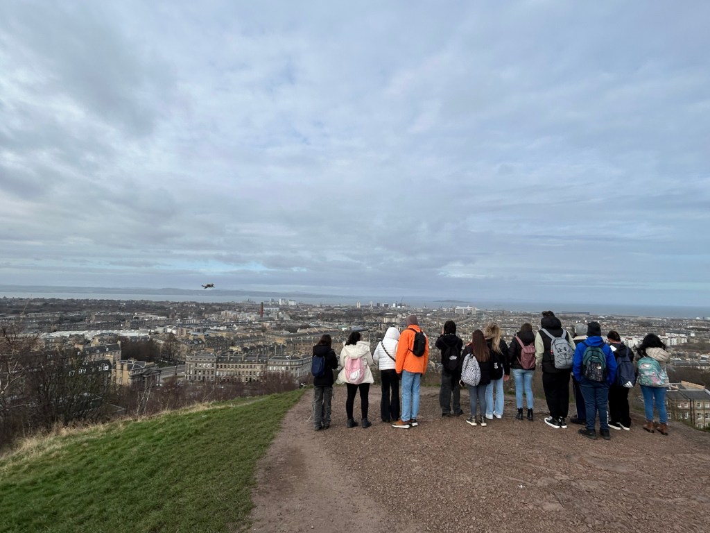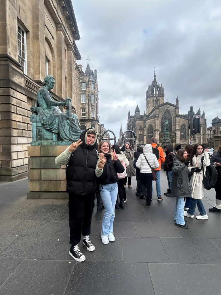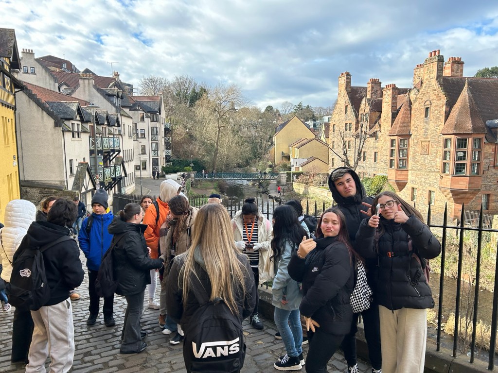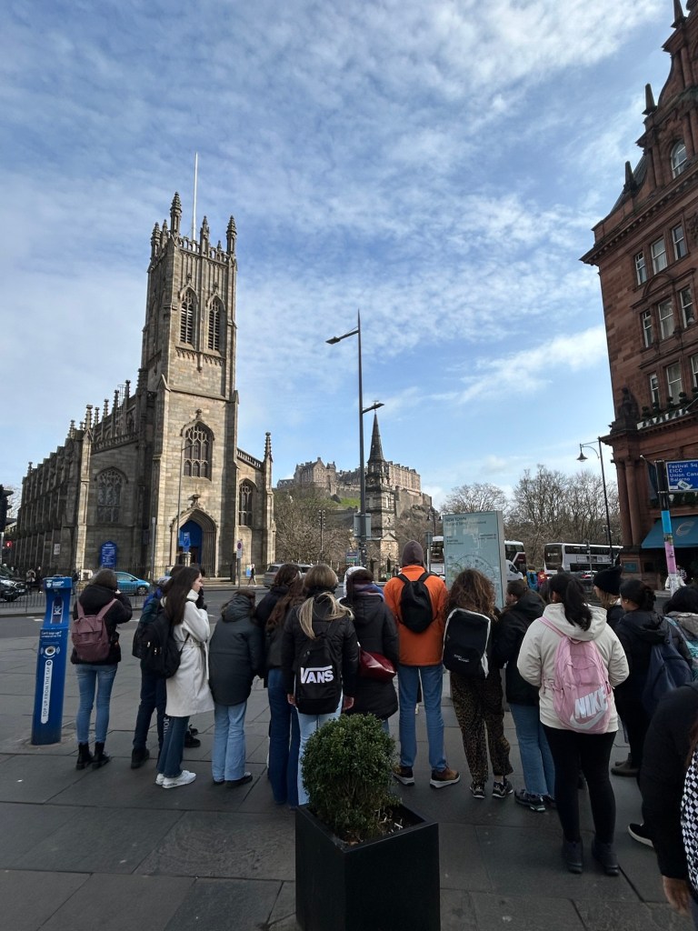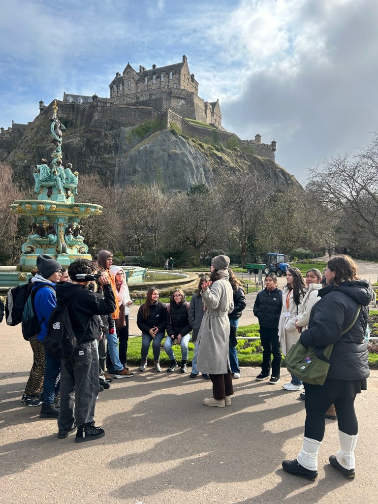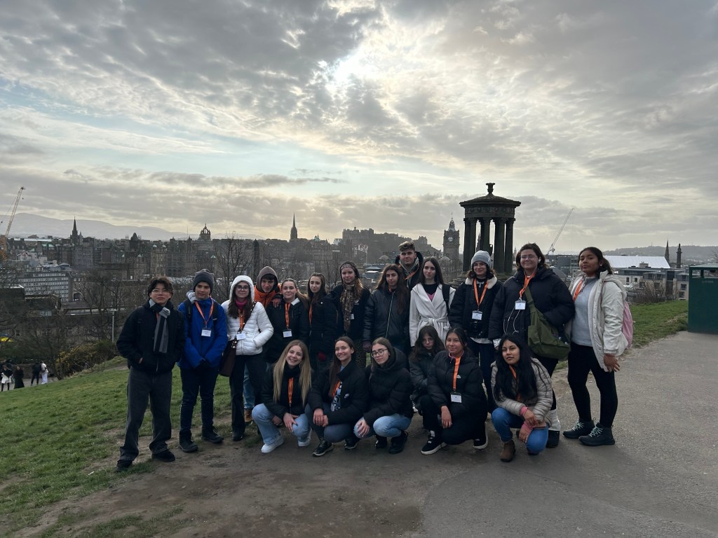 Después de unas cuantas horas de transporte (¡dos buses y un avión, que se dice rápido!), llegamos al centro de Edimburgo donde nos espera Victoria, quien llama a los taxis que llevarán a los alumnos a sus respectivas host families.