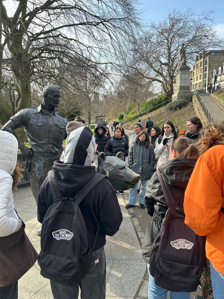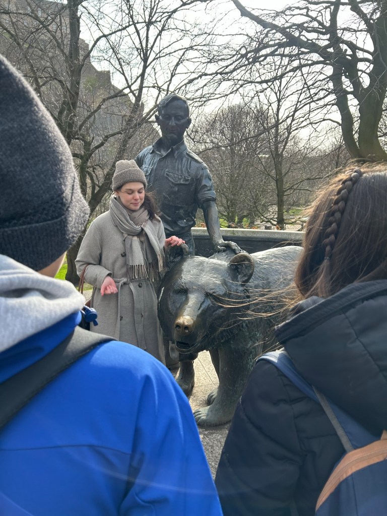 Cada poco íbamos parando para poder escuchar al guía y aprender un poco más de esta ciudad, sus secretos y curiosidades como por ejemplo la estatua de Wojtek, un oso adoptado por el ejército polaco que llegó a convertirse en héroe de guerra participando en batallas cruciales como la de Montecasino.