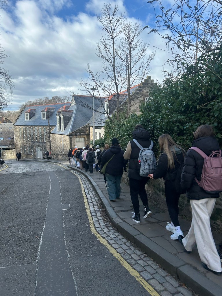 Primer día oficial que despertamos en Edimburgo. Tenemos que estar a las 9:00 en clase y todos llegan a tiempo menos algún grupito (cosas de olvidar que por aquí van por la izquierda, jaja).