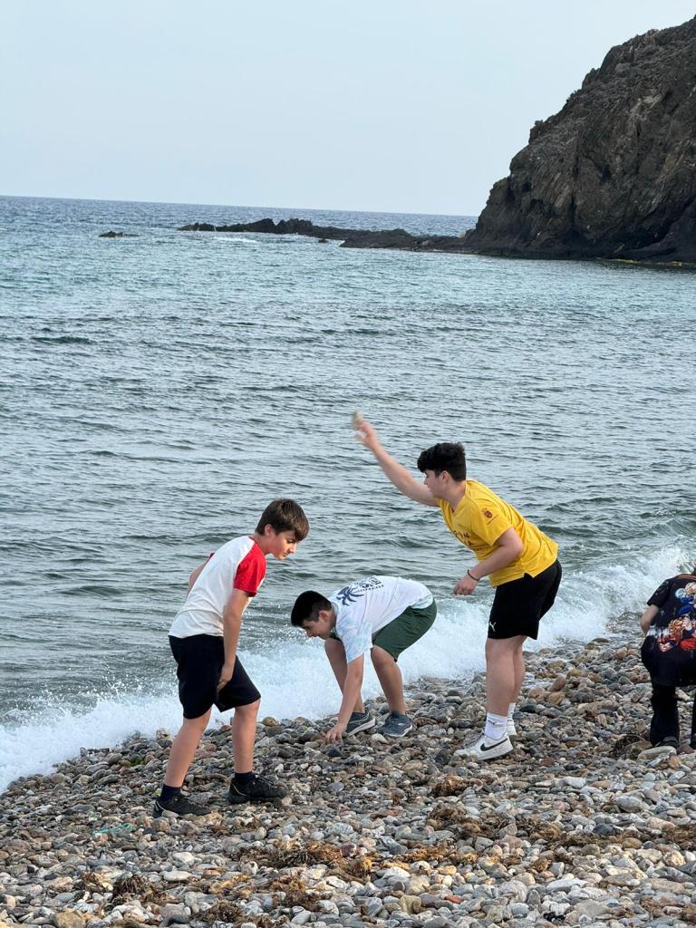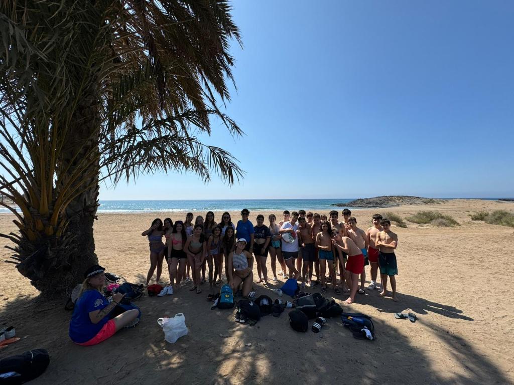 Hoy ha sido el segundo día del campamento de inmersión. Para empezar el día, los alumnos junto con los monitores y el profesor han ido a la excursión, en playa percheles para bañarse.