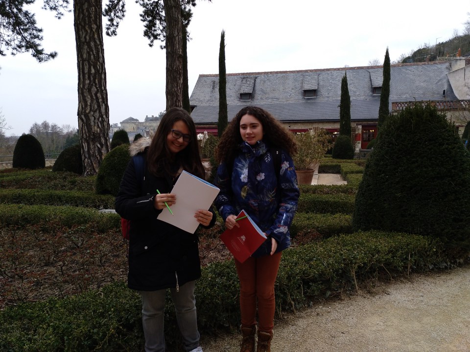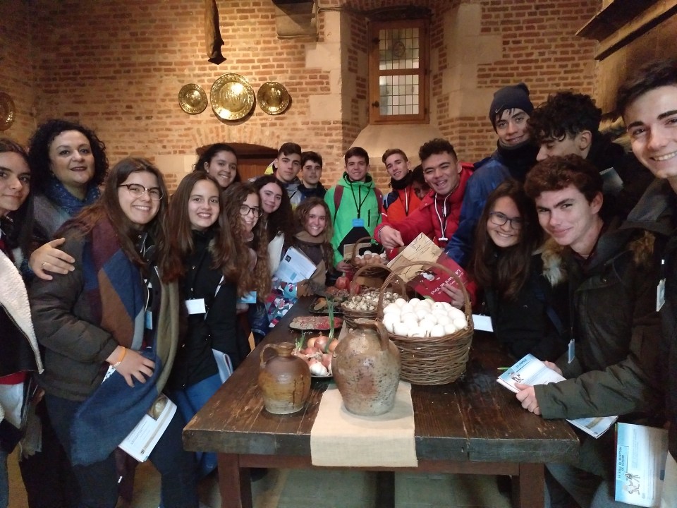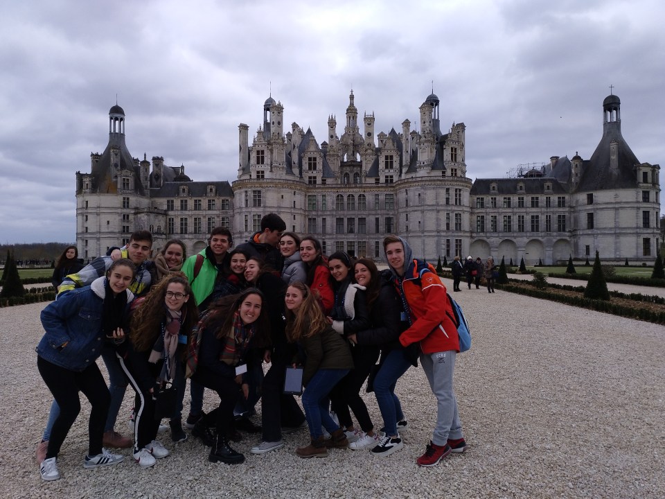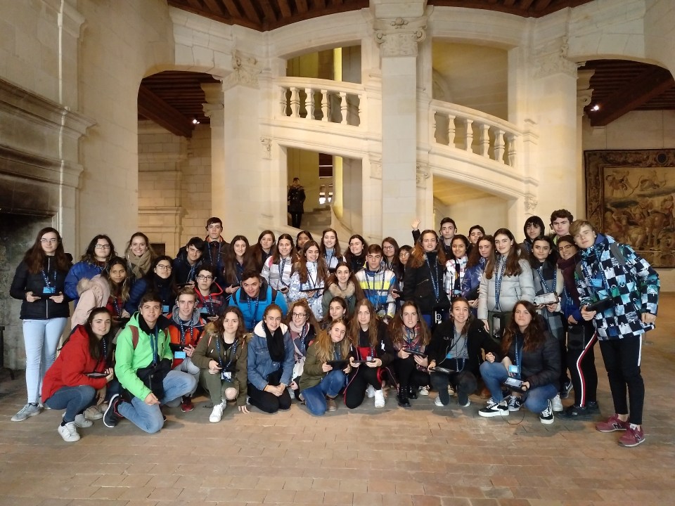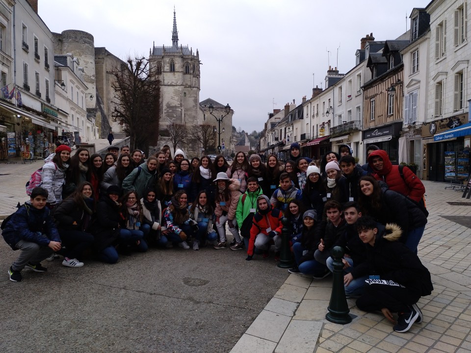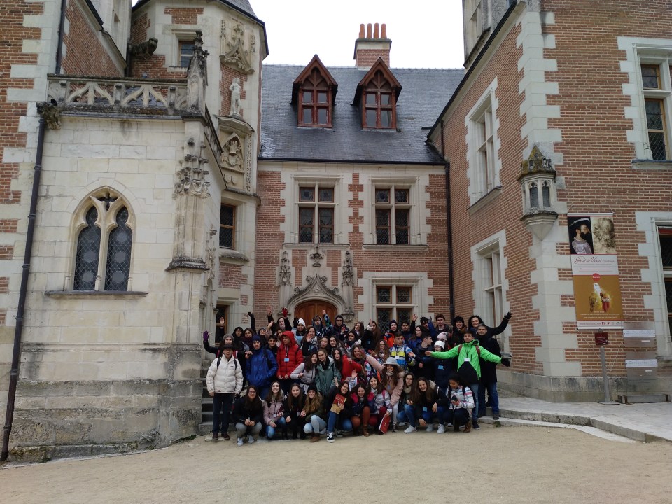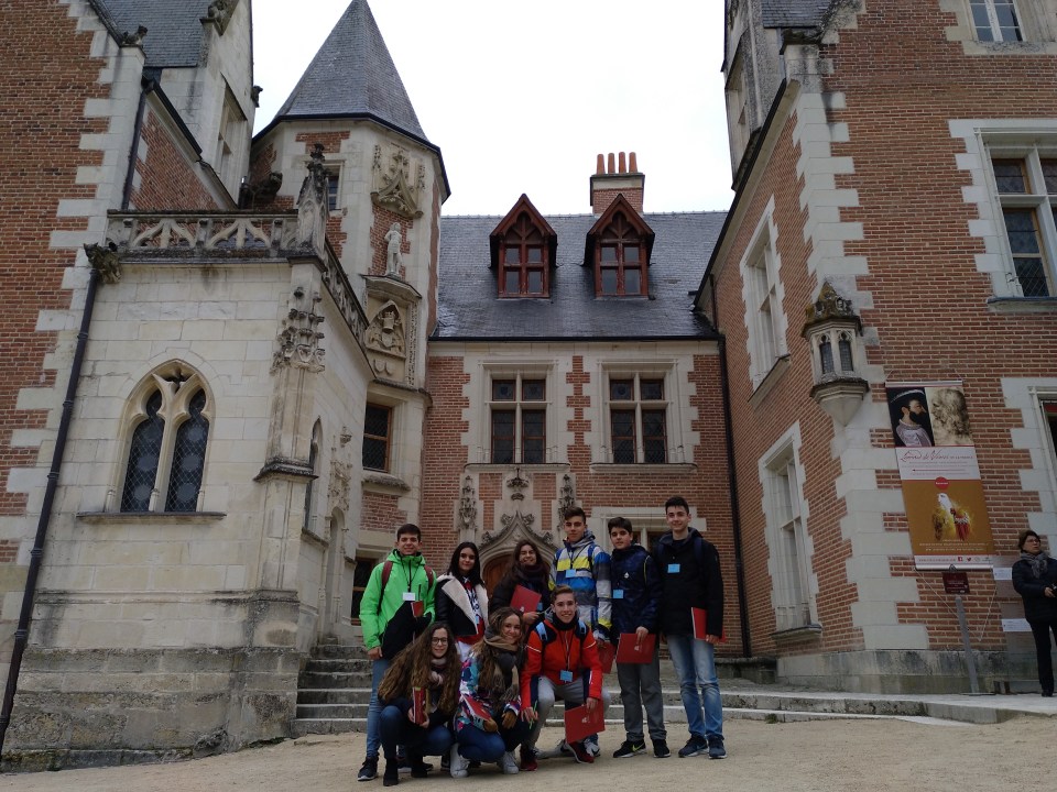 Primer día en la escuela con los franceses. El grupo español se ha ido en clase con los franceses por la mañana. Comieron en la cafetería a las 12h00 (la hora de comer francesa). Salimos a las 13h00 para visitar la pequeña ciudad de Amboise, muy peculiar con sus calles antiguas y su castillo real. De muchos reyes y reinas franceses, vino a vivir el rey Francisco primero que también ha traído a Leonard De Vinci.