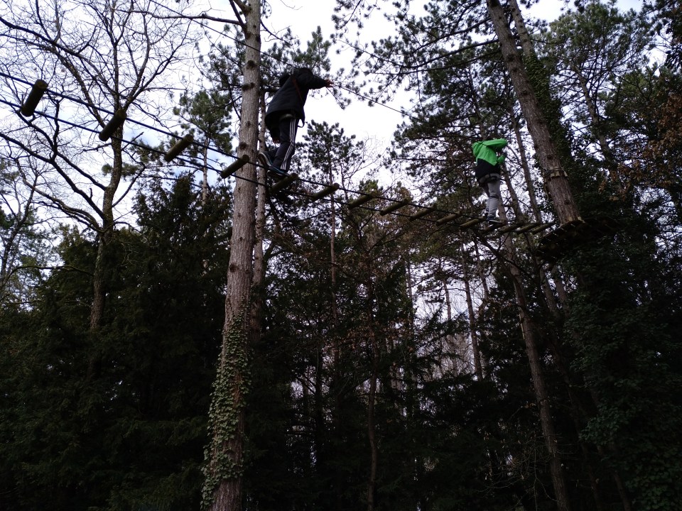 Todos los alumnos participaron en la aventura e hicieron los recorridos en los árboles. Un gran reto para muchos de ellos.