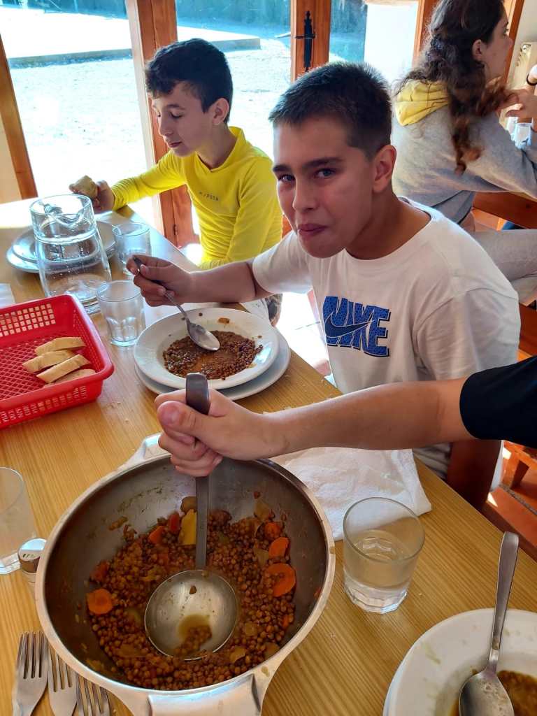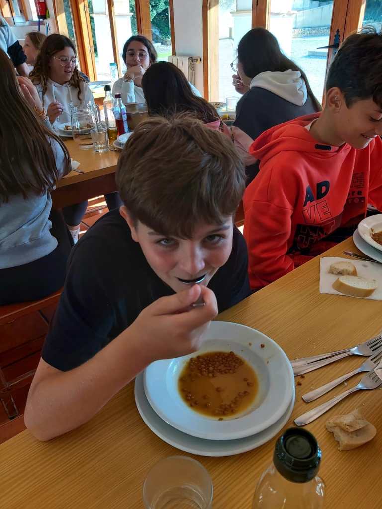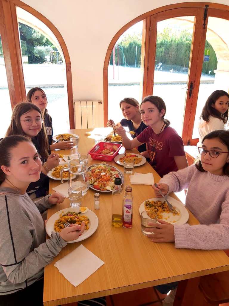 Al volver, el cocinero Jose nos estaba esperando con una deliciosa paella para comer. Después del tiempo libre, por petición de los alumnos, jugamos al infectado por toooodo el albergue.