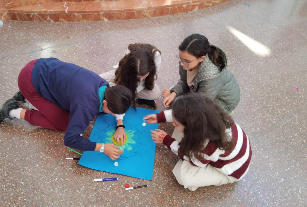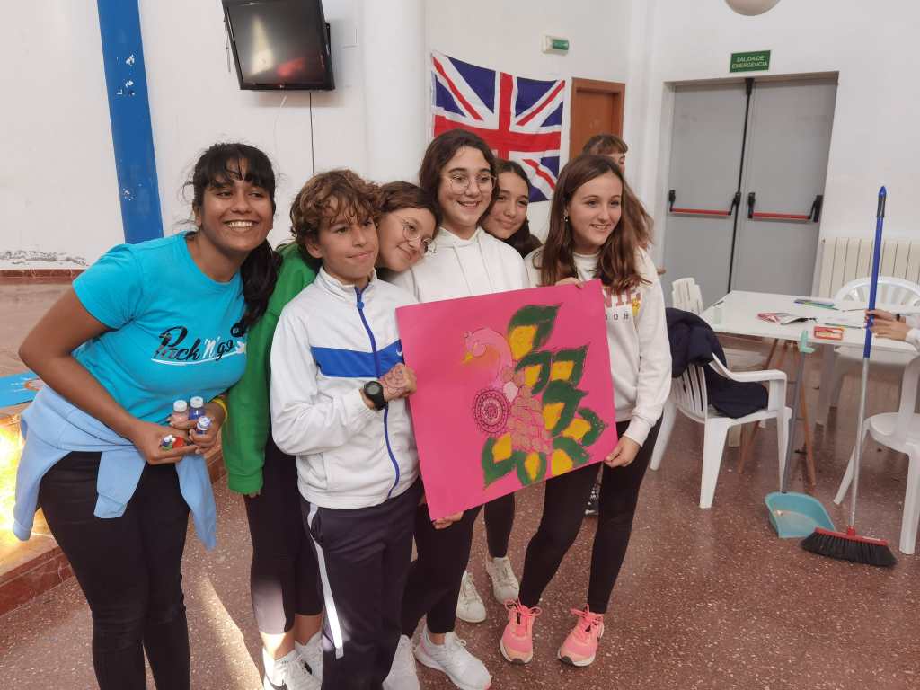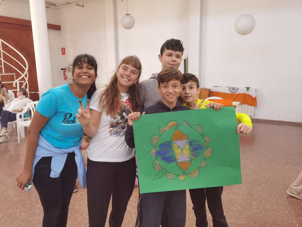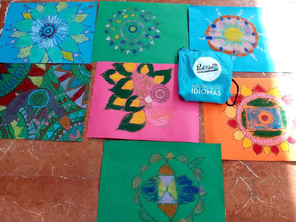 Luego, al final de la mañana, nos toca terminar los Rangoli. Se han quedado muy bien y nos los vamos a llevar al instituto.