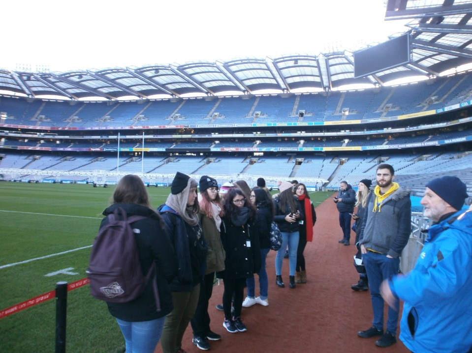 Después de comer, la actividad planificada fue la visita al legendario “Croke Park”. Este estadio, con capacidad para más de 82.000 espectadores, es el tercero más grande de Europa tras el Camp Nou y el Estadio de Wembley en el Reino Unido. Sus instalaciones albergan, desde hace ya más de 100 años, los más importantes eventos deportivos de la GAA (Asociación Atlética Gaélica), solo jugándose partidos de Hurling y Fútbol Gaélico, tanto masculinos como femeninos.
