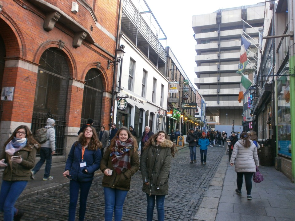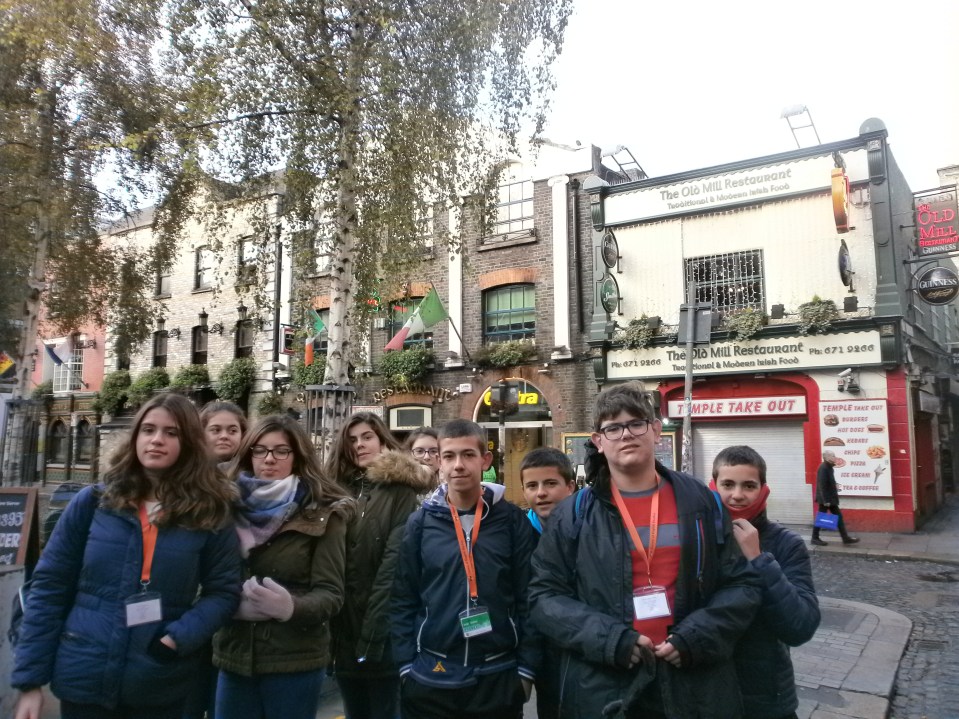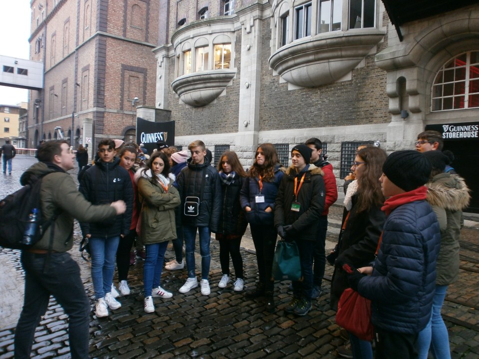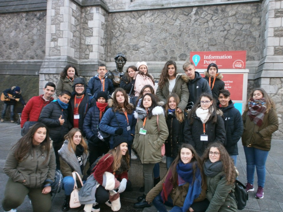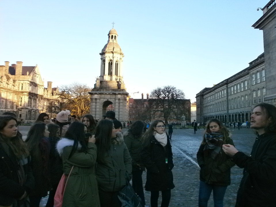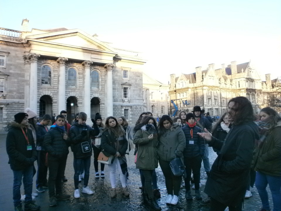 Antes de empezar con el tour comimos en la escuela nuestro “packed lunch” preparado por las familias. Más tarde nos vimos en el punto de encuentro con nuestro guía nativo para comenzar el recorrido por la ciudad. Durante el largo paseo visitamos los lugares más emblemáticos; Temple Bar, Henry Street, el Spire, la universidad Trinity College, etc.