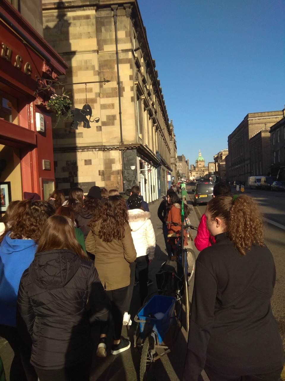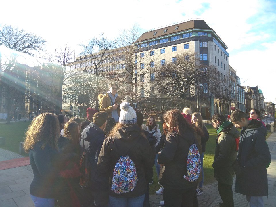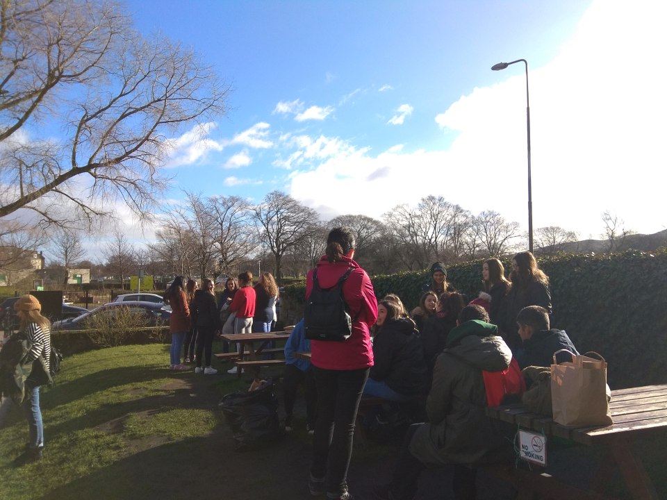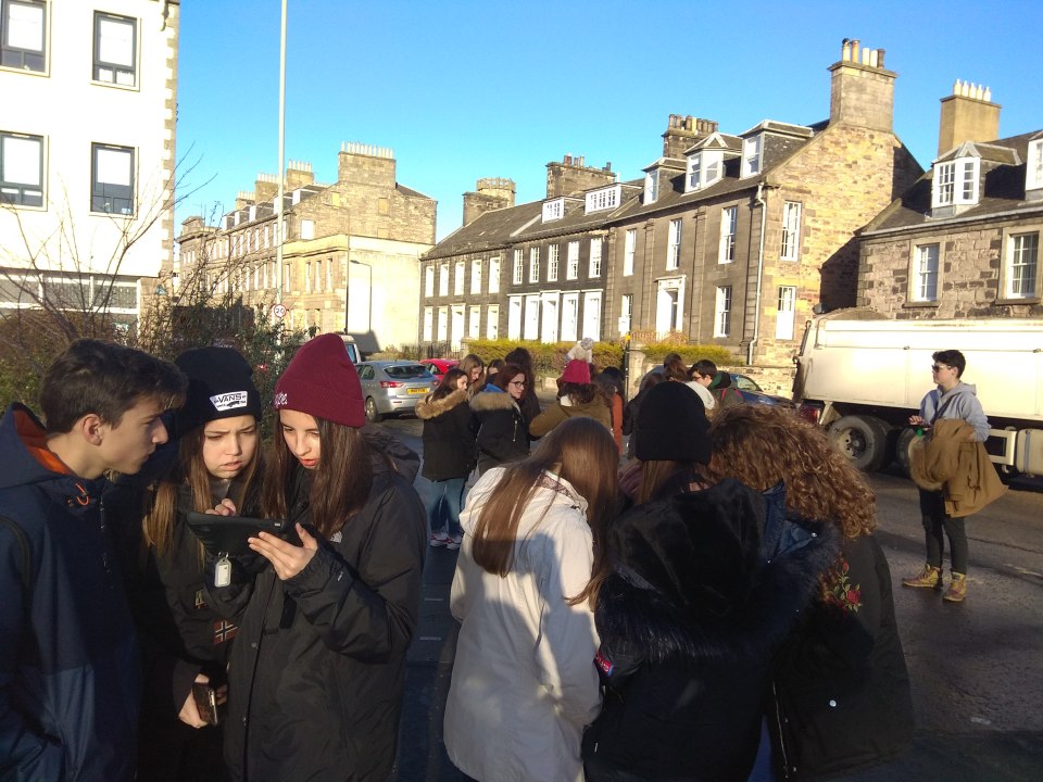Hoy ha sido nuestro primer día en Edimburgo. Hemos quedado a las 9 en el colegio y nos hemos ido a ver Leith y el centro de la ciudad a la vez que participábamos en un juego interactivo con tablets. Además, ha hecho un día realmente fantástico y, de vuelta a la escuela, hemos aprovechado para comer en las mesas del jardín del colegio. Después de la comida hemos tenido la prueba de nivel, una pequeña charla informativa y nuestra primera clase en el centro. Después de la cena, algunos hemos vuelto a las instalaciones del colegio para disfrutar juntos de nuestro tiempo libre, y otros hemos preferido quedarnos en casa para descansar 🙂