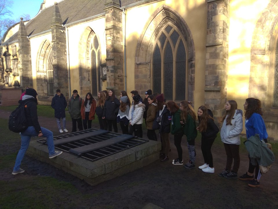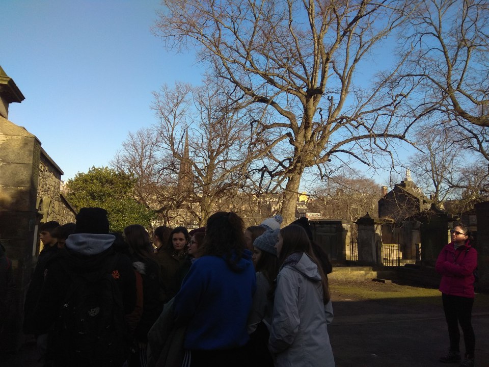 ¡Hoy ha vuelto a hacer súper buen día! Hemos ido al museo de Escocia y al cementerio en el que está el perro más querido del país, Bobby. En ese mismo cementerio, J.K. Rowling tomó algunas ideas para escribir su famosa saga, Harry Potter. También hemos visitado la cafetería a la que solía ir a escribir. Después hemos vuelto al colegio para comer y para tener las clases de la tarde. Esta noche, después de cenar, volveremos al colegio para pasar algo de tiempo libre todos juntos.