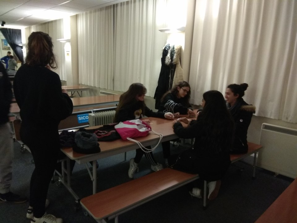 Después de la cena, algunos volvimos a la sala de actividades de la escuela para aprovechar nuestro tiempo libre y relajarnos un rato, otros preferimos quedarnos en casa de nuestras familias y descansar, ¡ha sido un día intenso!