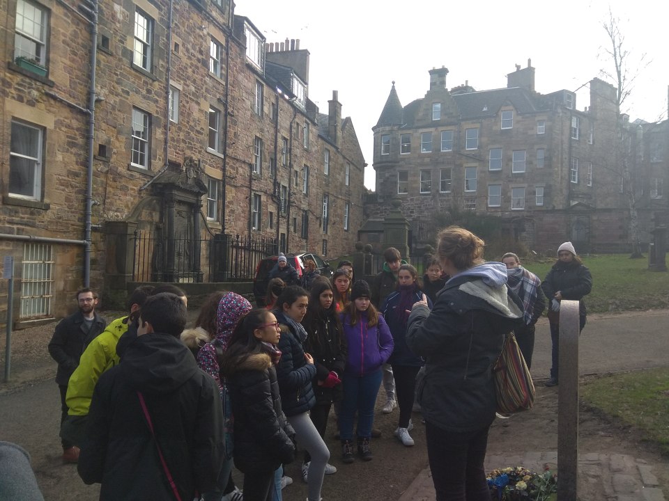 Hoy hemos visitado el museo de Escocia y nos ha encantado. El museo tenía salas dedicadas a la tecnología, a la ciencia, a lo animales, al espacio… así que todos hemos visto cosas que nos han encantado. Como nos ha quedado algo de tiempo libre y el tiempo nos ha acompañado, hemos visitado el cementerio en el que J.K. Rowling se inspiró para escribir Harry Potter y en el que está enterrado el perro más querido de Edimgurgo, Greyfriars Bobby. Después, hemos vuelto al colegio para comer y, más tarde, disfrutar de las clases.