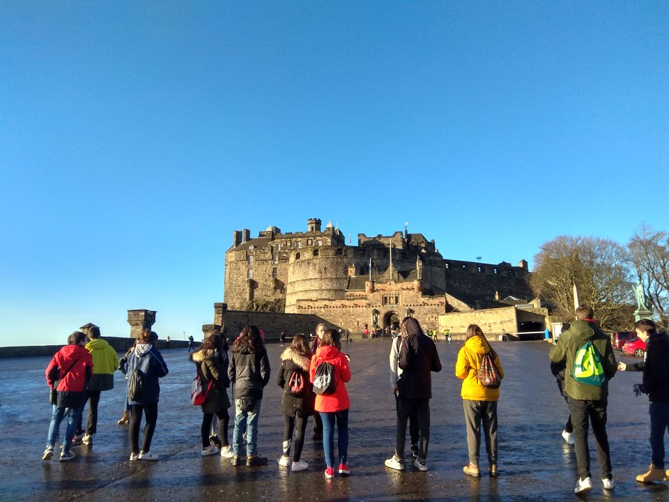 ¡Penúltimo día y última noche! Hoy hemos ido al castillo de Edimburgo, que está al lado del centro de la ciudad. Aunque el cielo estaba despejado, la verdad es que ha hecho mucho frío, pero, aún así, nos lo hemos pasado muy bien. Después hemos vuelto al colegio para comer y tener las últimas clases del viaje. Por la noche, después de la cena con las familias, hemos vuelto al colegio para aprovechar de la sala de juegos la última noche.