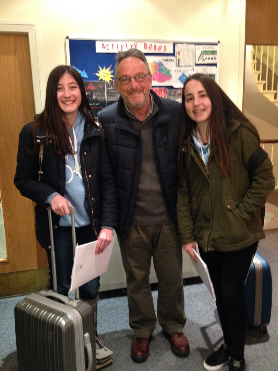 ¡Que placer llegar a Edimburgo con un grupo tan dinámico y feliz ! Aunque el vuelo tuvo retraso, tuvimos como siempre una cálida bienvenida. Tan pronto como llegamos, cogimos el autobús hasta la escuela. Allí los alumnos realizaron la prueba para repartirlos en las clases de Ingles de su nivel.