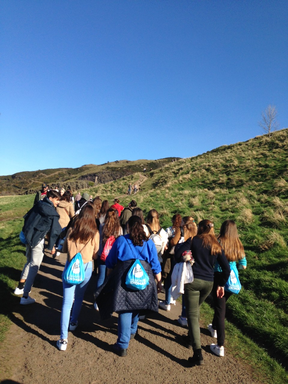 El día empieza como siempre, con una mañana de clases de ingles. A las 12:45 tuvimos la comida de mediodía para llenarnos de energía. Ya que lo siguiente del día necesita mucho esfuerzo físico. Hicimos la subida de la colina de Edimburgo, llamada “Arthur’s seat”. Un gran sendero que sube hasta la cima de la montaña. Requirió bastante esfuerzo para subir, pero seguro que valió la pena porque arriba tuvimos una vista panorámica extraordinaria de toda la ciudad, el mar y el rio. Una buena recompensa.