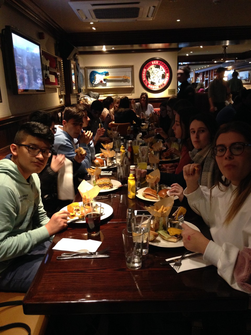 Esta mañana los alumnos tuvieron clase (aunque sea domingo, porque tienen el día de excursión el lunes). Felizmente, la tarde fue de compras con tiempo libre en el centro de la ciudad. ¡Todos estaban encantados! Además para la cena, fuimos a comer juntos con las profesoras a la famosa cadena de restaurantes “Hard Rock Café” y luego para el postre a “Starbucks café”. Lo pasamos muy bien.