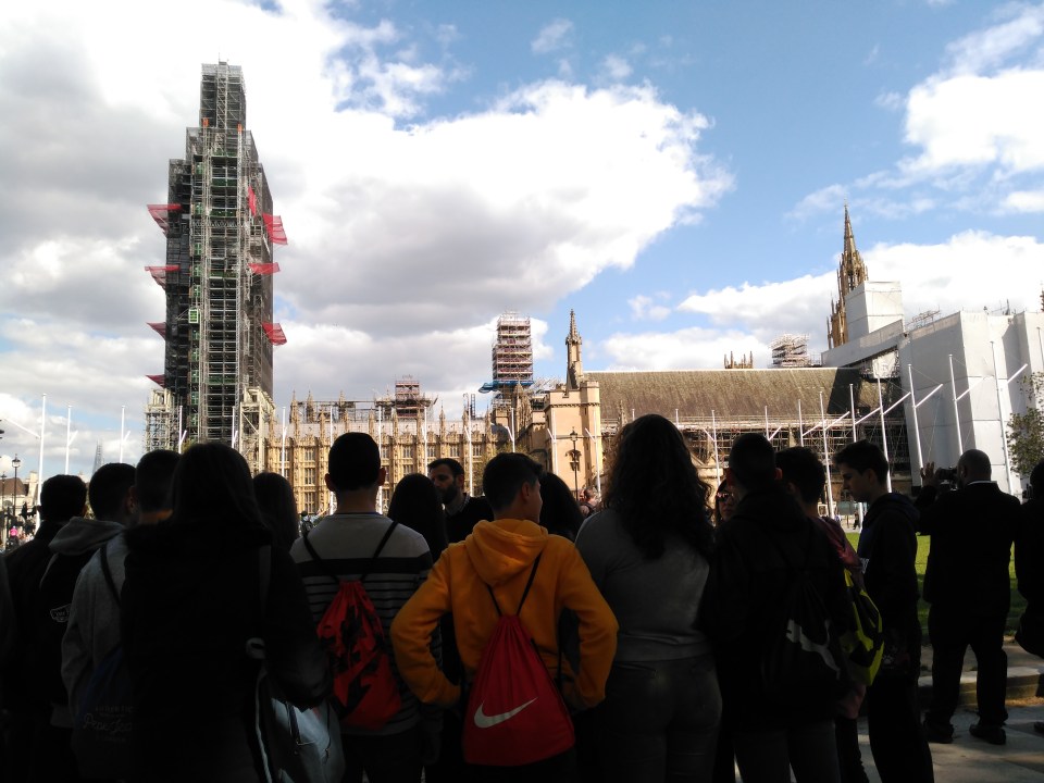 Esta mañana hemos ido por primera vez a la academia de forma independiente y aunque algunos han llegado un poco más tarde, nadie se ha perdido. Hemos realizado una prueba de nivel para que así pudieran separanos por grupos para comenzar las clases. Después, hemos cogido el tren hacia Waterloo. Muy cerca de allí se encuentra el London Eye, que ha sido nuestro primer contacto con Londres. Durante media hora hemos podido disfrutar de las mejores vistas de Londres subidos en esa inmensa noria. El tiempo nos ha acompañado, pues ha hecho un día soleado espectacular. Tras bajar del London Eye, nos hemos dirigido hacía el Big Ben y Houses of Parliament. Es una pena que estén arreglando el Big Ben y no lo podamos ver en todo su esplendor, pero eso no ha impedido que nos echaramos alguna que otra foto con él. Posteriormente, hemos visitado la zona de Westmister Abbey, donde nuestro guía, Andy, nos ha contado algunas curiosidades sobre esta abadía. Después hemos visitado, Downing Street, donde vive la Primera Ministra, y Trafalgar Square, y desde allí hemos ido a la zona de St. James’ Park y Buckingham Palace, donde finalmente hemos podido ver a la guardia real. Hemos paseado también por Green Park, donde hemos cogido un metro que nos ha llevado a la estación para coger el tren de vuelta a Wimbledon.
