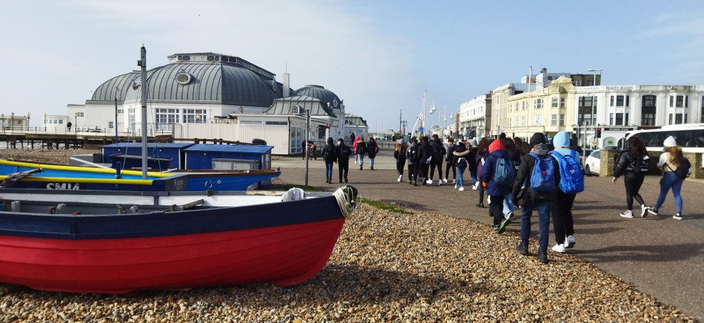 ¡La suerte nos acompaña! Nuestro primer día en Worthing ha sido muy soleado. El pueblo es muy chulo y más grande de lo que imaginábamos. Hemos dado un paseo por las calles principales y hemos paseado por la playa.